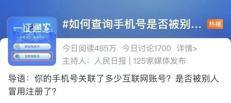 为了防范用户不知情而注册互联网账号等带来的涉诈风险,切实为群众排忧解难,工信部近日正式推出“一证通查2.0”服务——全国互联网账号“一证通查”,用户凭借手机号码和身份证号码后六位,便可查询本人名下手机号码关联的互联网账号数量。