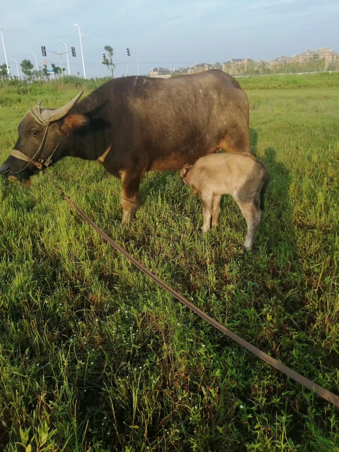 中国其他地区成年水牛体重一般为500-650公斤,崇明的品种显然大了一些。这是因为崇明有滩涂、湿地、芦苇荡、密布的小河,这些都是水牛们的最爱。且崇明东部的滩涂是咸淡水交汇处,水、植物中富含矿物质,水牛吃得也好。
