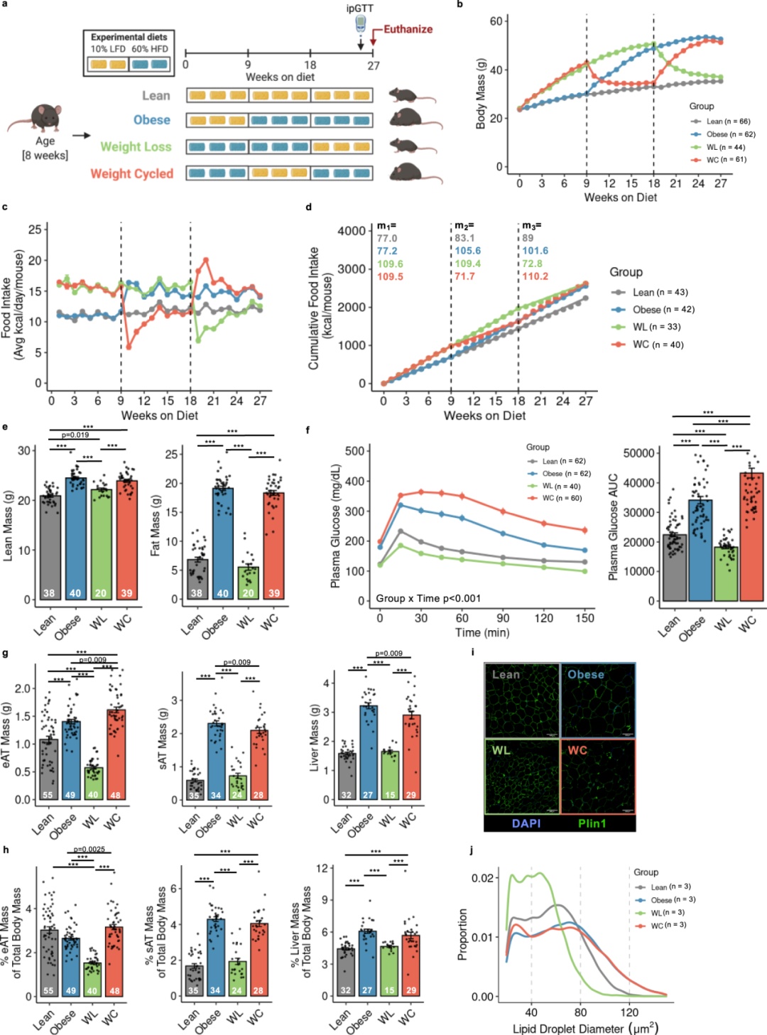 图为:瘦、肥胖、体重减轻和体重循环的小鼠模型