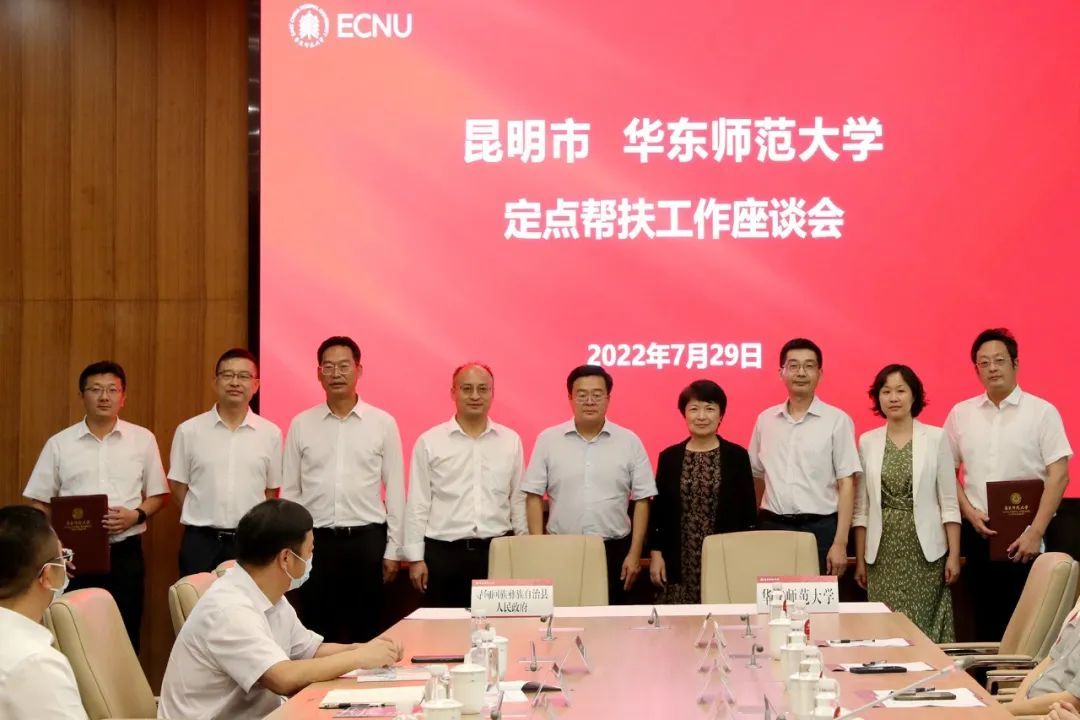 7月29日,昆明市、华东师范大学定点帮扶工作座谈会在华东师大普陀校区举行,总结近年帮扶工作成效,续签定点帮扶协议,共同为下一阶段协同发展进行再谋划、再部署。