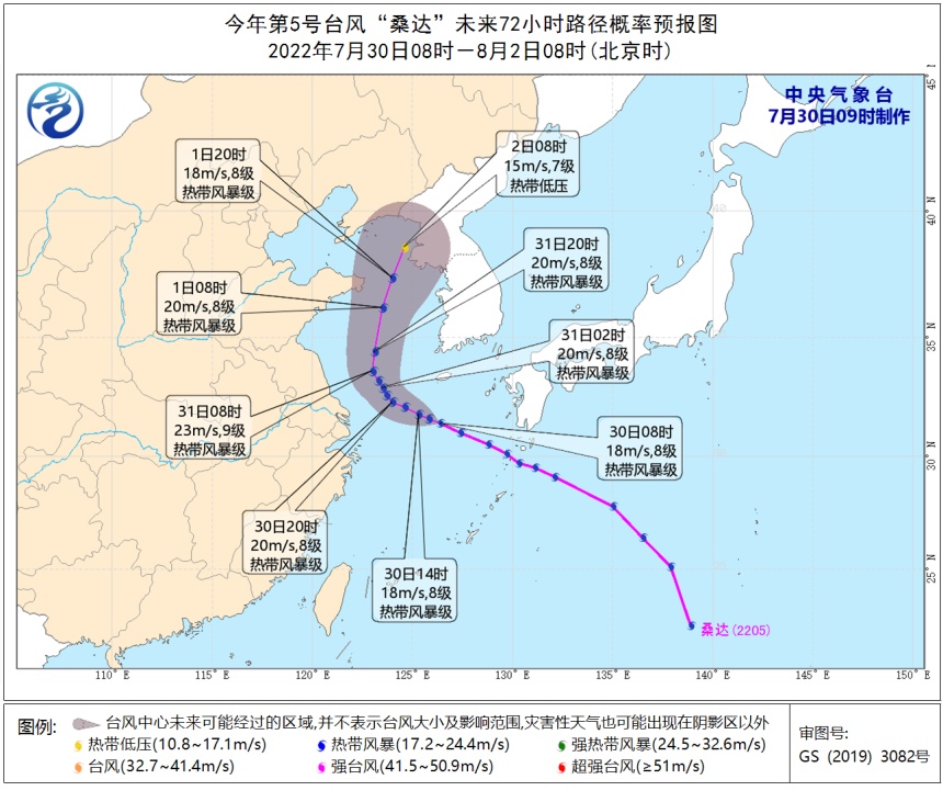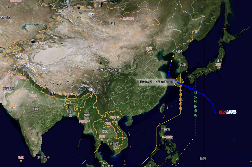 市气象服务中心介绍,今年第5号台风“桑达”(热带风暴级)昨天夜间已进入东海,今天(30日)早晨8点钟其中心位于上海偏东方向大约426公里的东海北部海面上,未来“桑达”将继续向西偏北方向移动,今天半夜到明天上午在距上海约200公里的海面上缓慢移动,明天下午转向偏北,移向黄海北部。