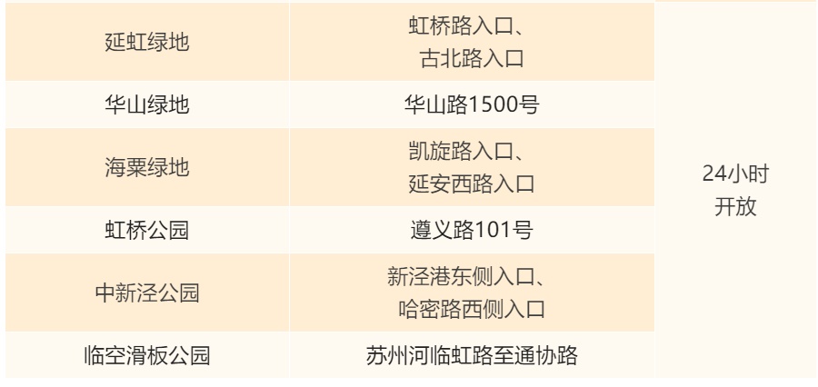 目前,长宁区属公园绿地中,包括中山公园等10座公园、外环林带生态绿道开放时间延长至19:00,中新泾公园等6座公园则恢复24小时开放。