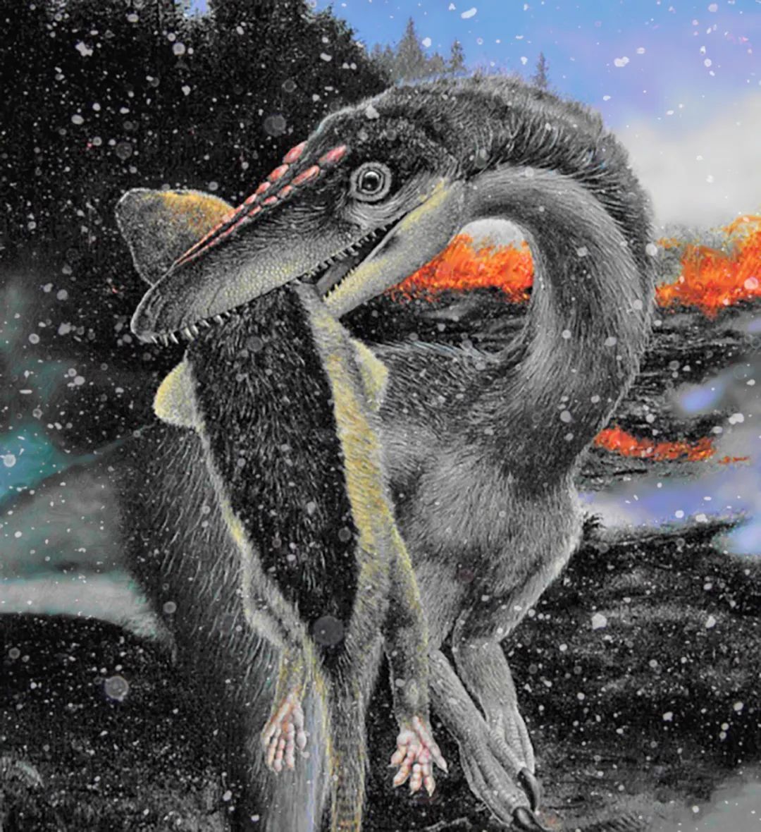 而大部分没有羽毛保温的其他初龙型类动物则灭绝于火山冬天,仅少数体积比较小的一些种类靠躲避在洞穴中而躲过了灾难。