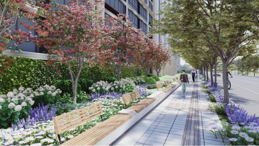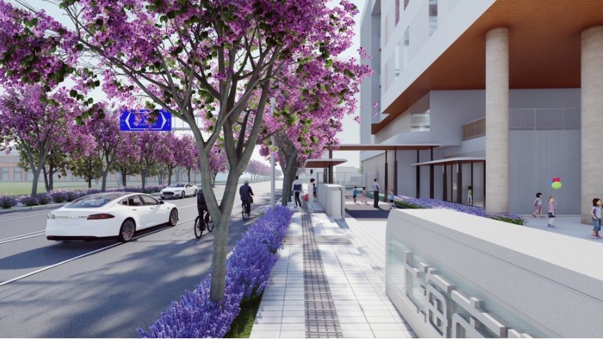 近期,静安区规划和自然资源局持续聚焦人民城市建设,推动道路建设落地。在新建市政道路设计审批过程中,始终坚持以人为本的设计理念,以创建人民城市为核心,紧抓道路品质提升,模糊道路“红线”概念,以“景观化”概念突破传统道路设计理念,创造具有活力的街区空间。