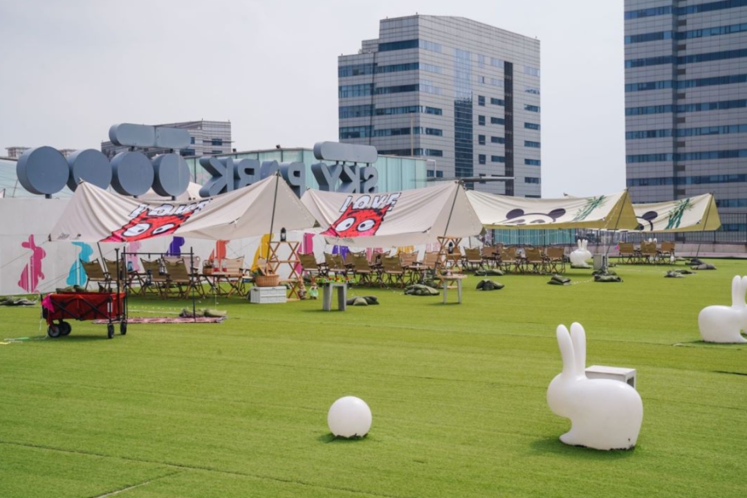 长风大悦城在高登公园开启了“1000㎡城市精致露营”活动。作为国内首个园景视野屋顶空间,这里可以将长风公园和苏州河畔两处湖光山色尽收眼底,城市天际线和湖光交融一览无遗,焕新的粉色跑道刷新魔都浪漫地标榜。古德拉克市集烟火延续,30+市集好摊齐聚,美酒美食、文创手作、生活好物承包夏日小惊喜。