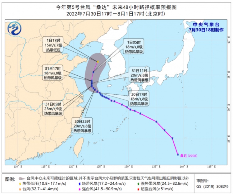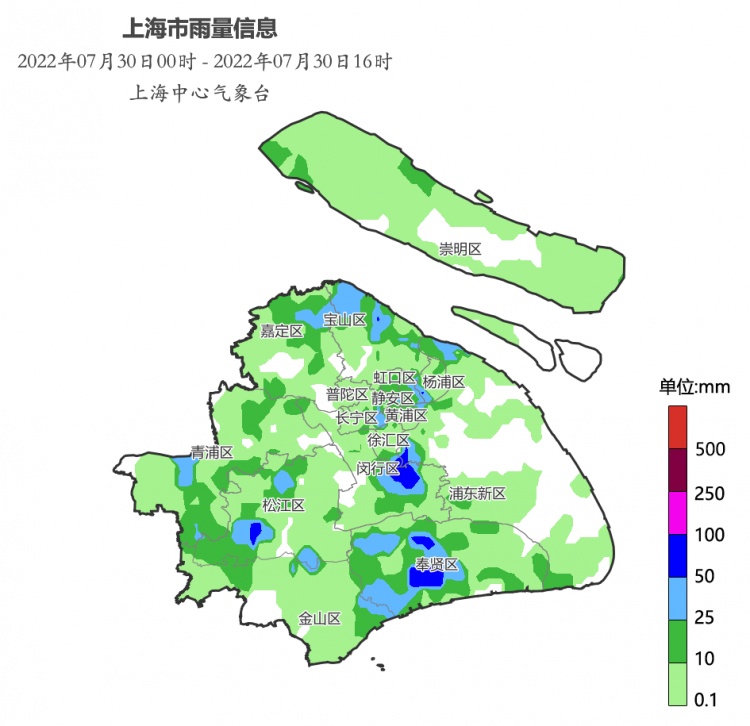 第5号台风“桑达”今天(30日)20时位于上海偏东方向约291公里的海面上,中心附近最大风力有8级(18米/秒),预计“桑达”将以每小时10~15公里速度向西北方向移动,强度变化不大。受“桑达”外围影响,今天白天本市出现分散性阵雨或雷雨,统计7月30日13时至20时降雨量,5个街镇超过25.0毫米,10.2%的街镇超过10.0毫米,其中金山廊下镇35.0毫米为最大,1小时雨量最大出现在金山廊下镇34.5毫米(15时55分~16时55分)。