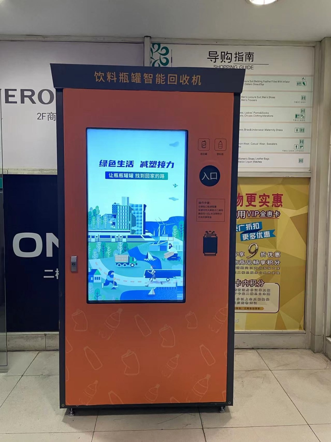 近日,一台方方正正的橙色机器“落户”在了徐家汇六百商场内,来往的市民对这台机器的用途大多摸不着头脑。区绿化市容局工作人员“悄悄”透露,这台机器最大的功能就是可以将可回收垃圾“变现”。