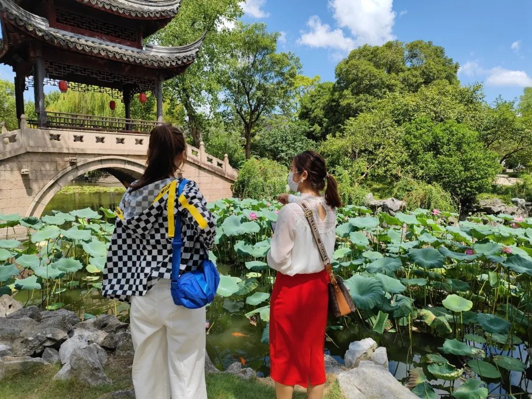 两位正在游园赏荷的市民这样说到:“这里的一景一木都非常有韵味,满足了我们对江南园林所有的幻想。这样的自然美景配上这样的古典建筑,更能凸显的是我们中国人与自然和谐发展的生态理念。”