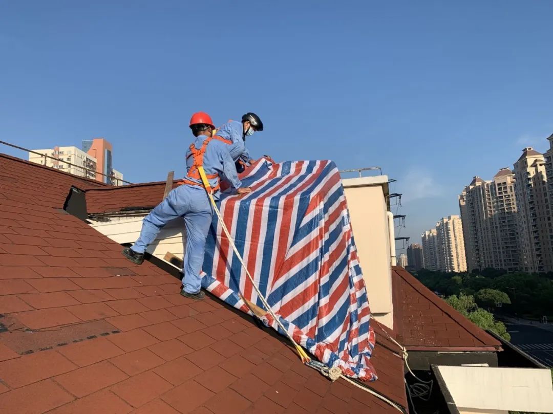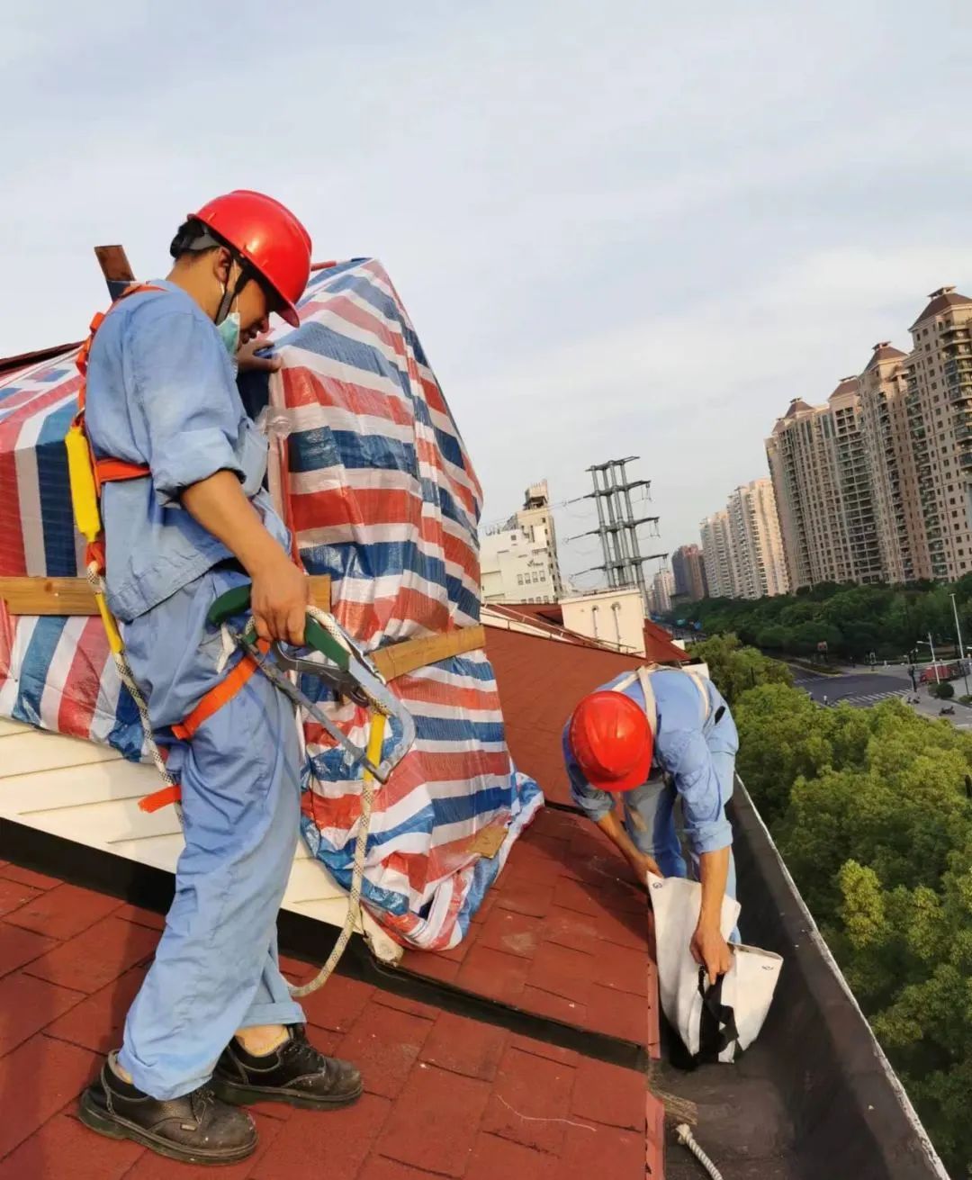 台风天气来临,日前,新长宁集团仙霞物业有针对性地开展老房排险行动。冒着高温,工程维修人员来到了天山五村,爬上屋顶,抢在台风来临前快速排除“老虎窗”框架破损带来的危险,确保辖区居民安全度汛。