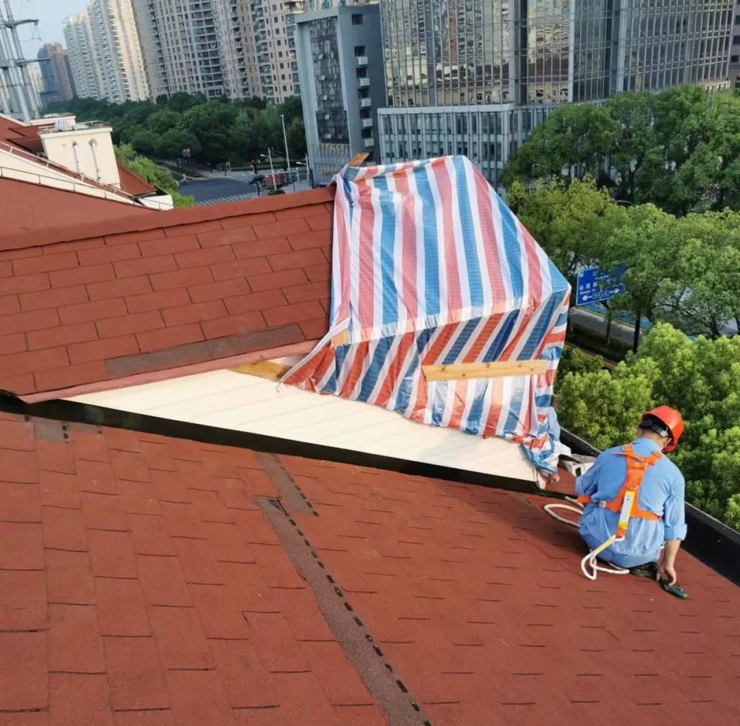 随着上海进入汛期,仙霞物业公司开展辖区防汛防台工作,在排查高空坠物险情时,发现天山五村部分居民楼屋顶的”老虎窗“框架发生不同程度的破损,“涉及3栋居民楼,共计5个老虎窗框架破损。”据仙霞物业工程部经理闵军华介绍,排查次日,他们便立即组织维修人员展开了应急排险行动。