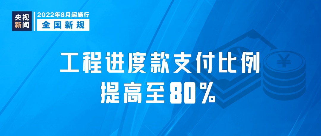《关于完善建设工程价款结算有关办法的通知》8月1日起施行。通知明确,政府机关、事业单位、国有企业建设工程进度款支付应不低于已完成工程价款的80%。