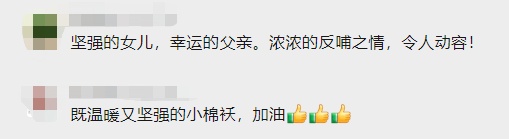 “爸爸,我看到了。爸爸加油,一定要扛过去,你看你大姑娘都这么坚强了,你也得坚强啊,加油。”