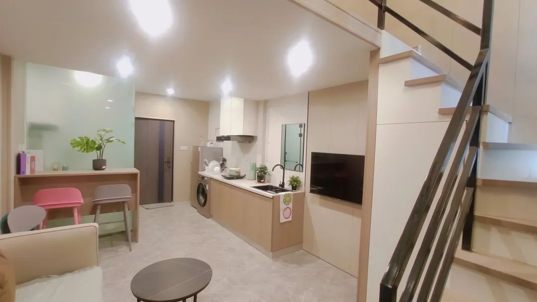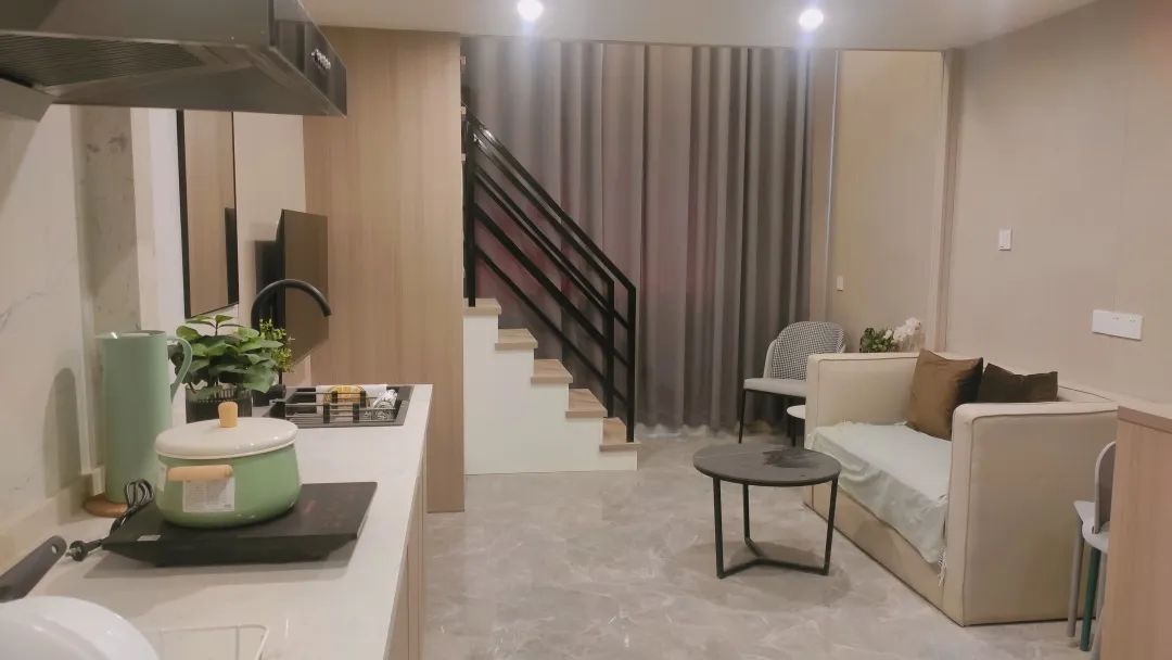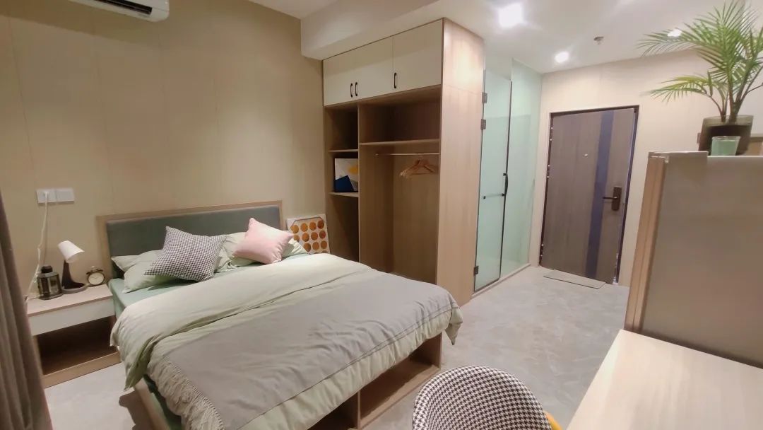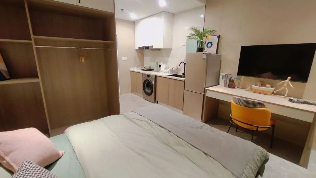 闵房抱家联明村人才公寓项目着力完善人才公寓配套,室内拥有空调、洗衣机、冰箱、热水器、电视、智能门锁、轻餐灶台、抽油烟机、床、定制衣柜、沙发、书桌等设施设备,实现拎包入住,完全不必拖沓,让入住更省心,让居住更舒心。