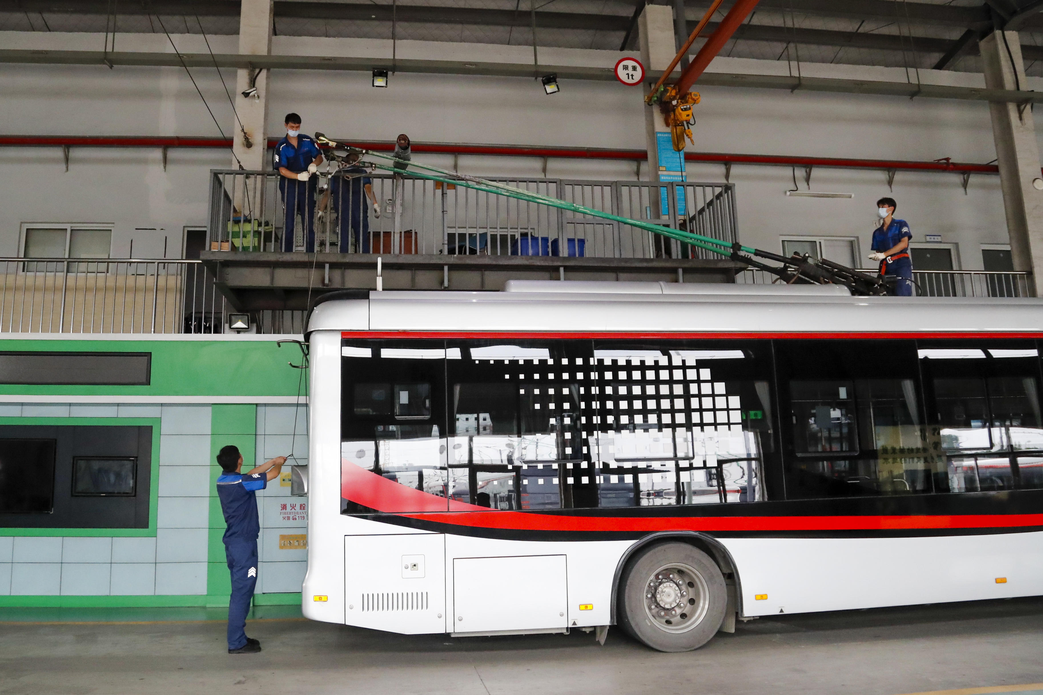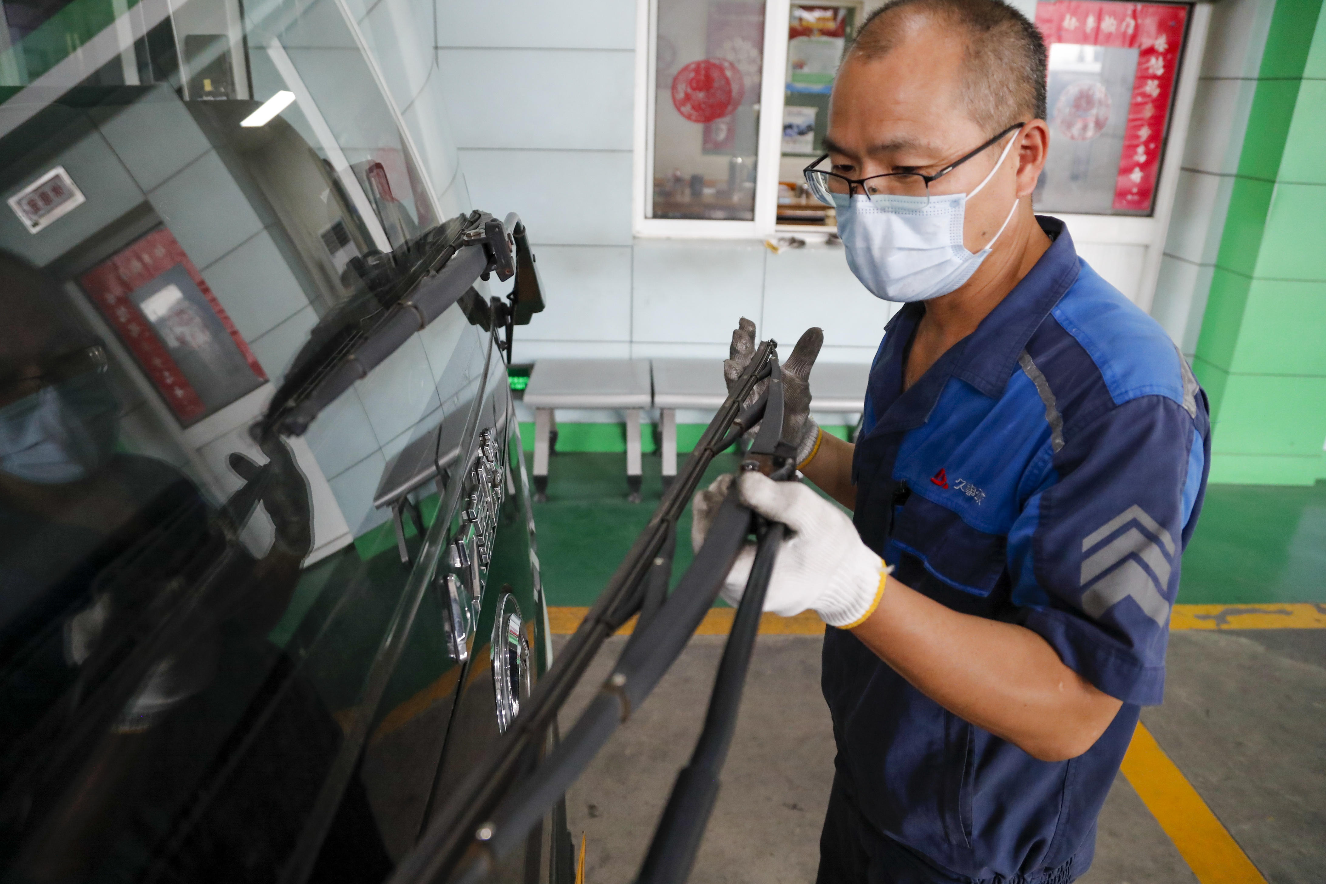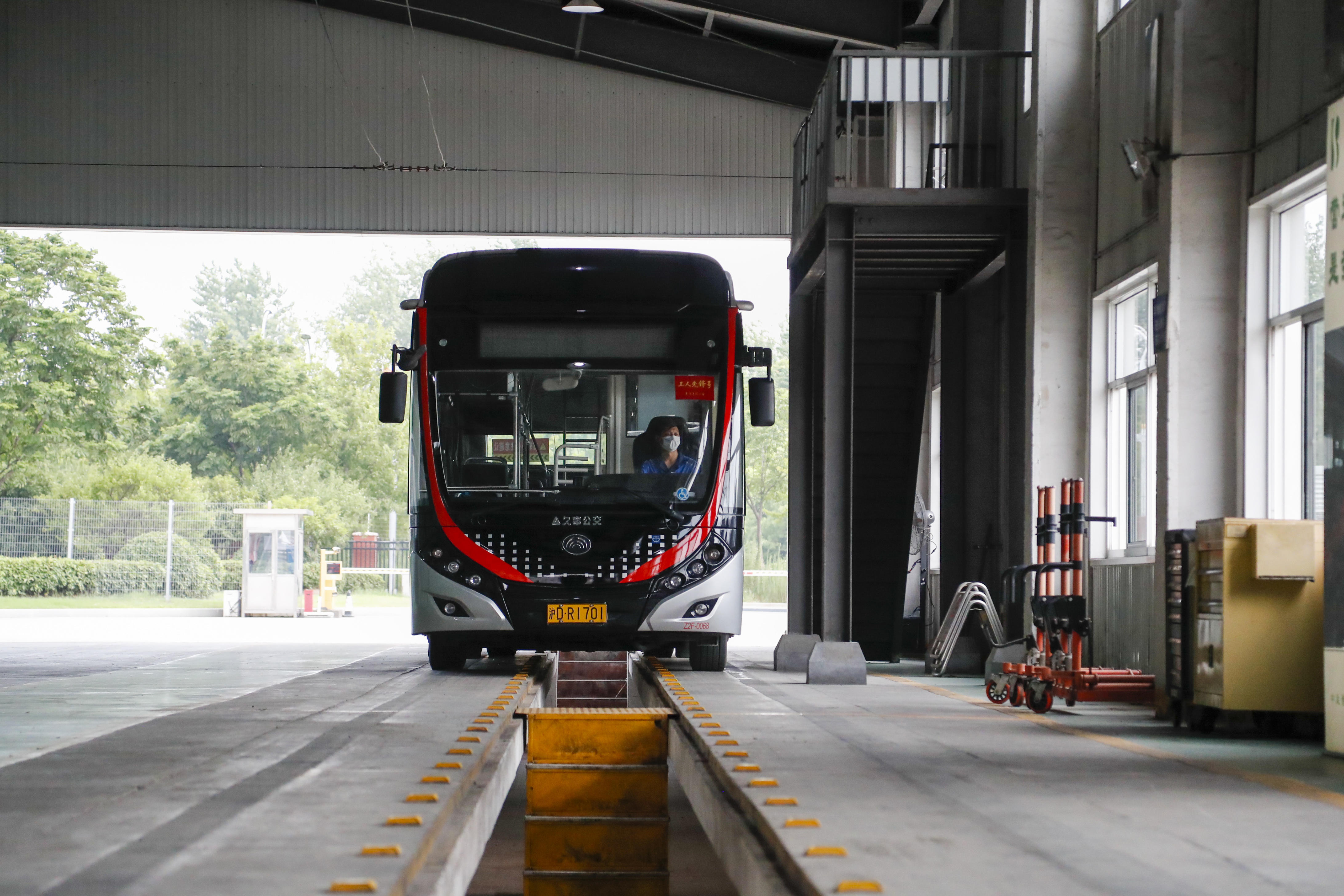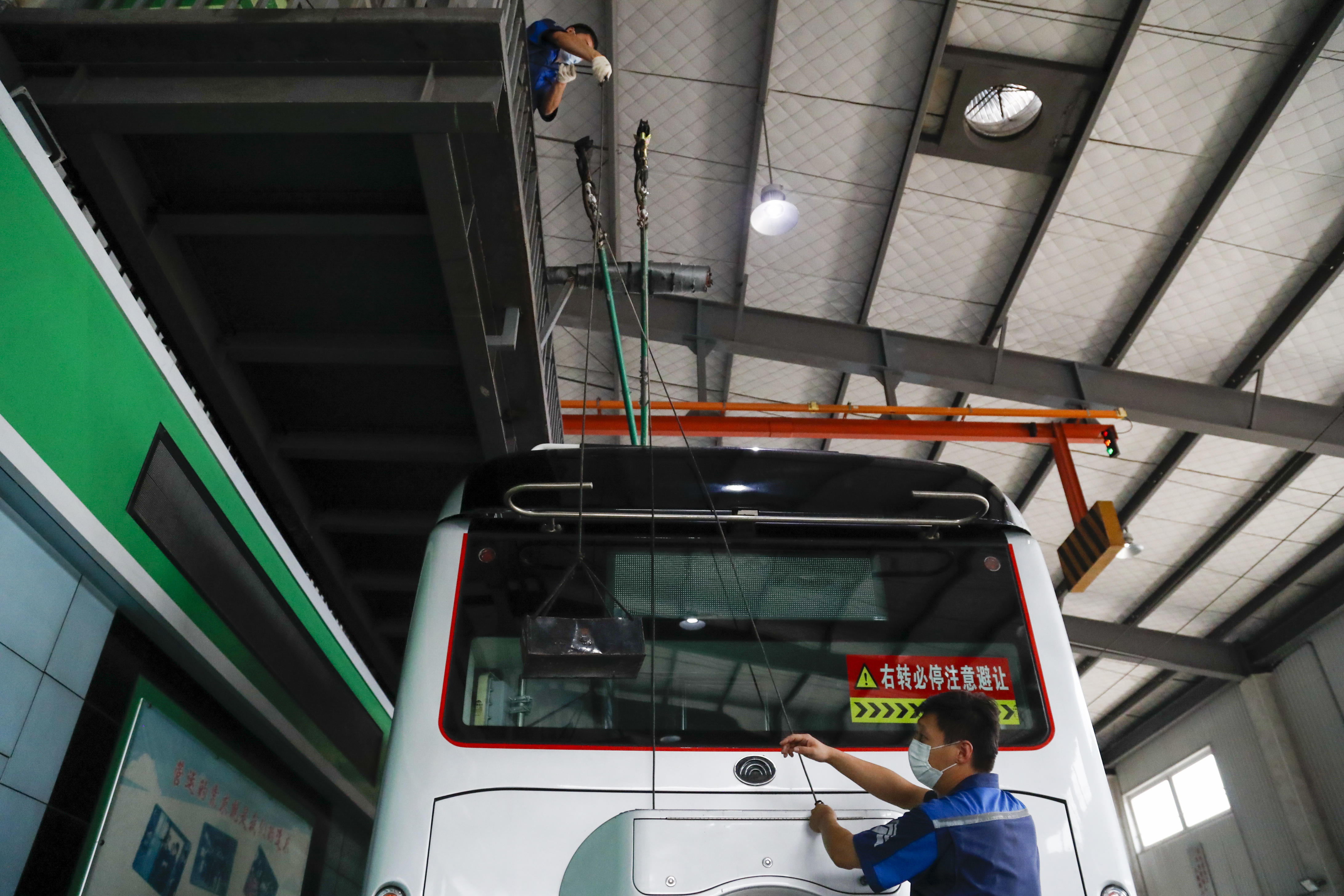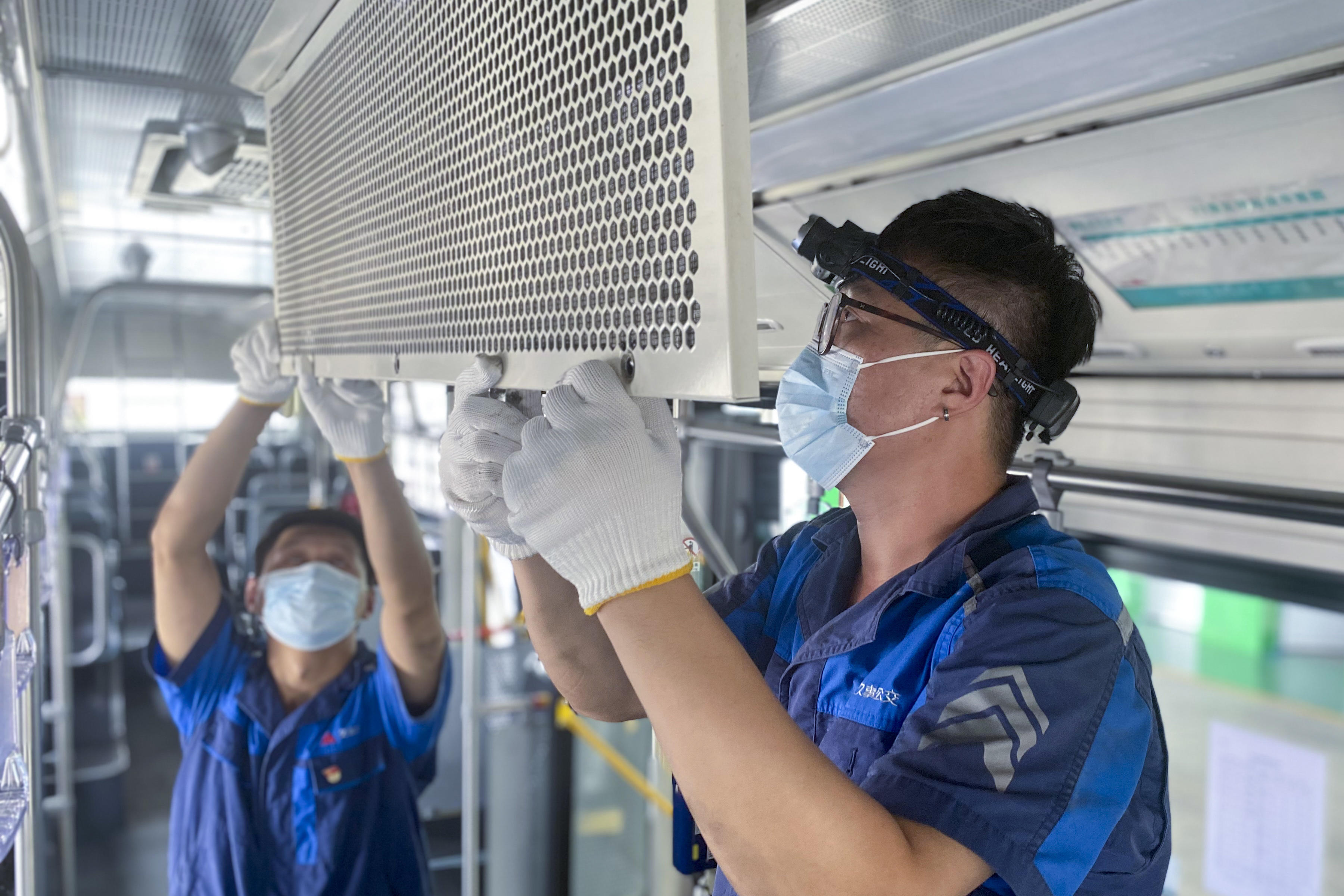 高温天气是汽车故障的多发期,为了保证维通风和安全,修车间不能安装空调。当公交车被送至报修车间,做好与司机的交接后,秦立和多年搭档金玉玺就要开始先对车辆外围进行检查,包括测量轮胎胎花、检查雨刮器、灯照、反光镜、逃生阀等,“像轮胎胎花,检测数值一旦在6mm左右就是极限了,胎花没了抓地力肯定就不行了,那就一定要换掉。”秦师傅蹲在地上测量完前胎的胎花后便进了车厢,熄火后的车厢内,温度比维修车间还要高上7-8℃,对车内的保险带、报警器等进行检测,车窗、扶手检查完毕后,清理空调滤网也是必不可少的一环。“车内车外都检查完以后,我们就要上镁金台去检查一下车顶,因为是电车,所以煤精(集电杆碳刷,具有让“鞭子”采电的作用)和集电杆是必检项。”从车上下来,秦立手臂上的汗水早已哗哗落下。