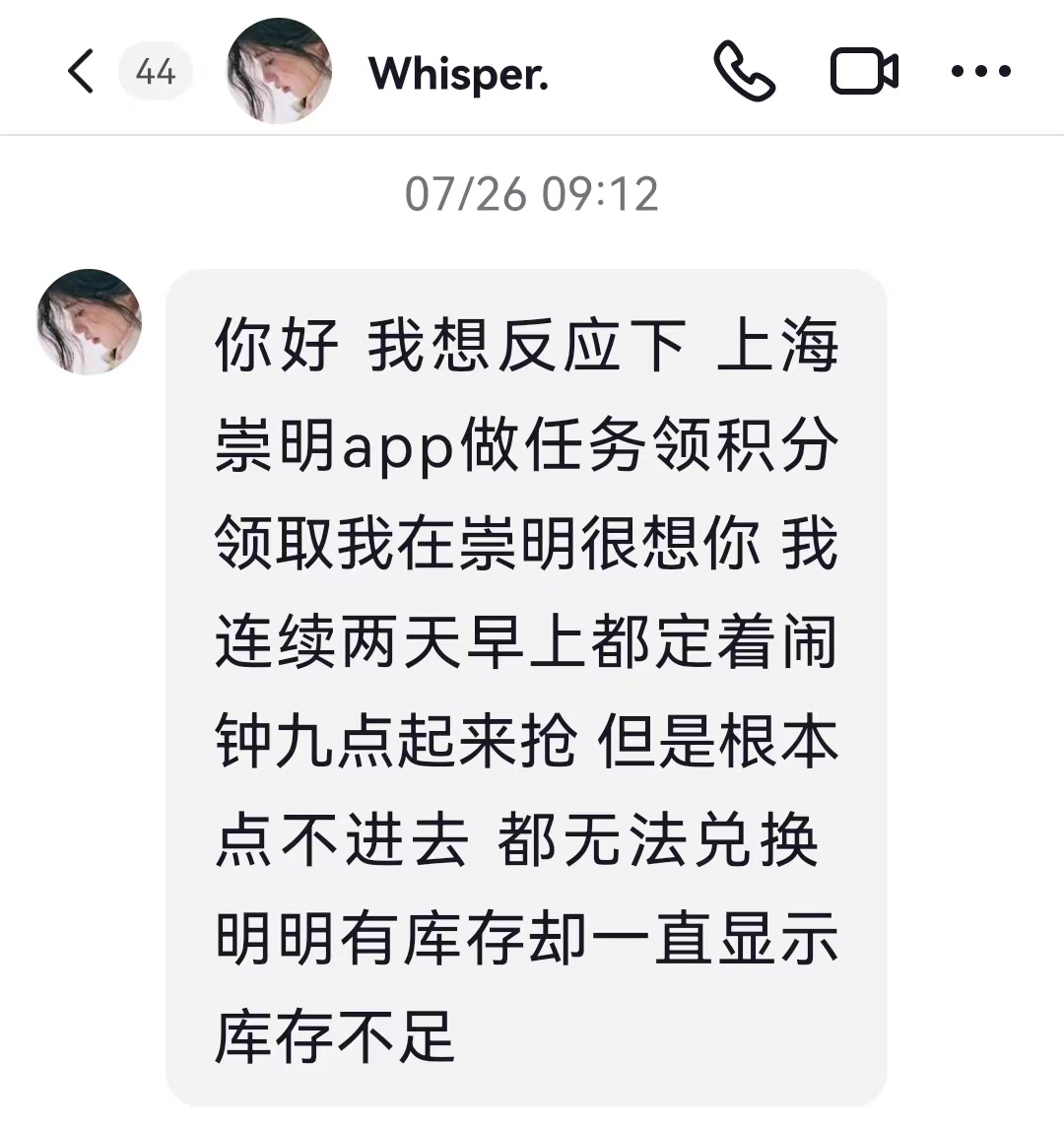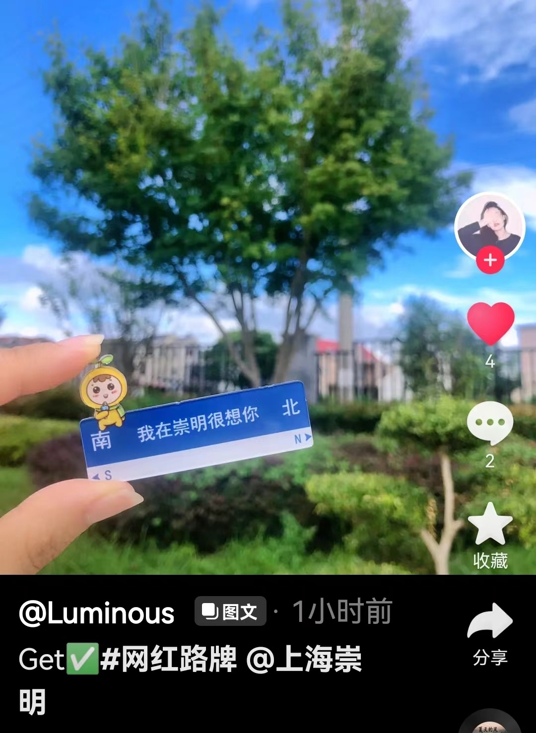 这段“吐槽式”的聊天截图来自网友“whisper”。“Whisper”——崇明人“00后”,大二学生。连续定了7天闹钟、连续抢了7天,最后以失败告终。“爱意随风起,美好皆可期,我是一名在外读大学的学生,特别惊喜我的家乡也有了这样的文创路牌,对于我们这些在外求学的大学生来说,这块路牌是我们对于家乡的眷恋和对亲人的想念,我特别想开学离家的时候能带上这块小路牌……”这是“Whisper”在抖音后台的留言。她的这份情感是否极具共性,对于很多岛外崇明人来说,这是否也是大家喜欢上这块文创路牌的理由?
