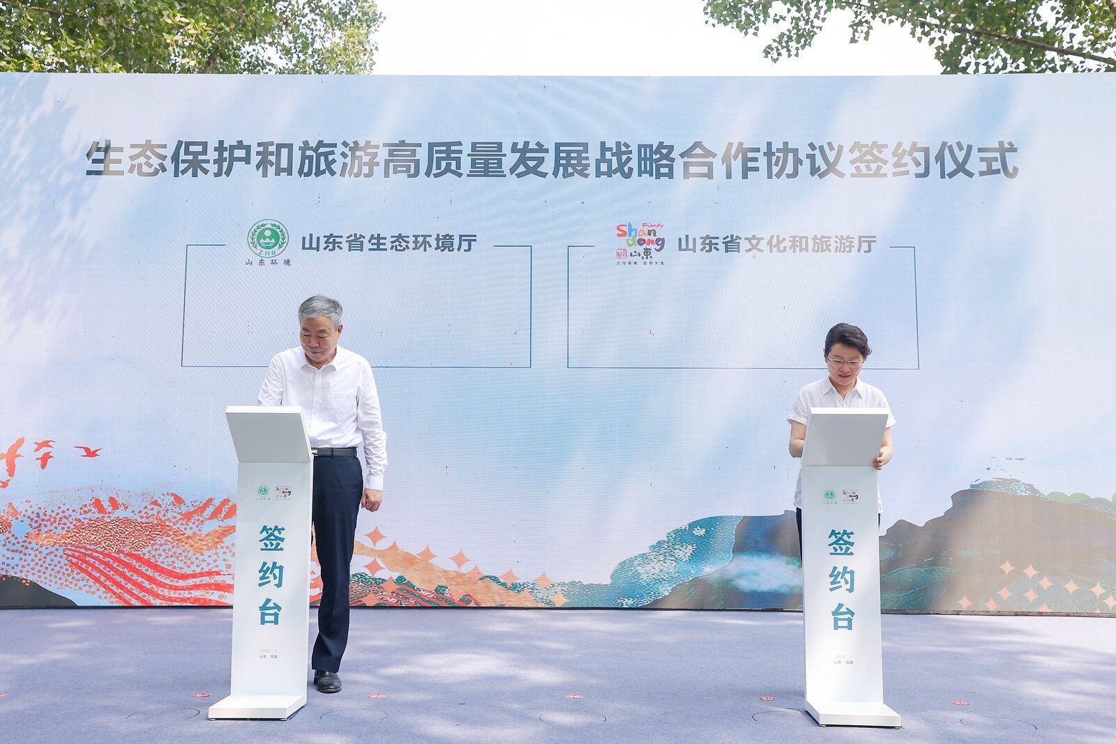 在活动现场,山东省生态环境厅与山东省文化和旅游厅签订战略合作协议,为探索生态与旅游高质量发展新路径。根据协议,未来双方将从加强生态旅游的组织领导、建立生态旅游的工作协调机制、出台指导性意见和规划、提高生态旅游服务质量和水平、加大生态旅游的研究阐释和宣传推介等多个方面入手,在生态旅游领域开展深入的合作交流和协同发展。