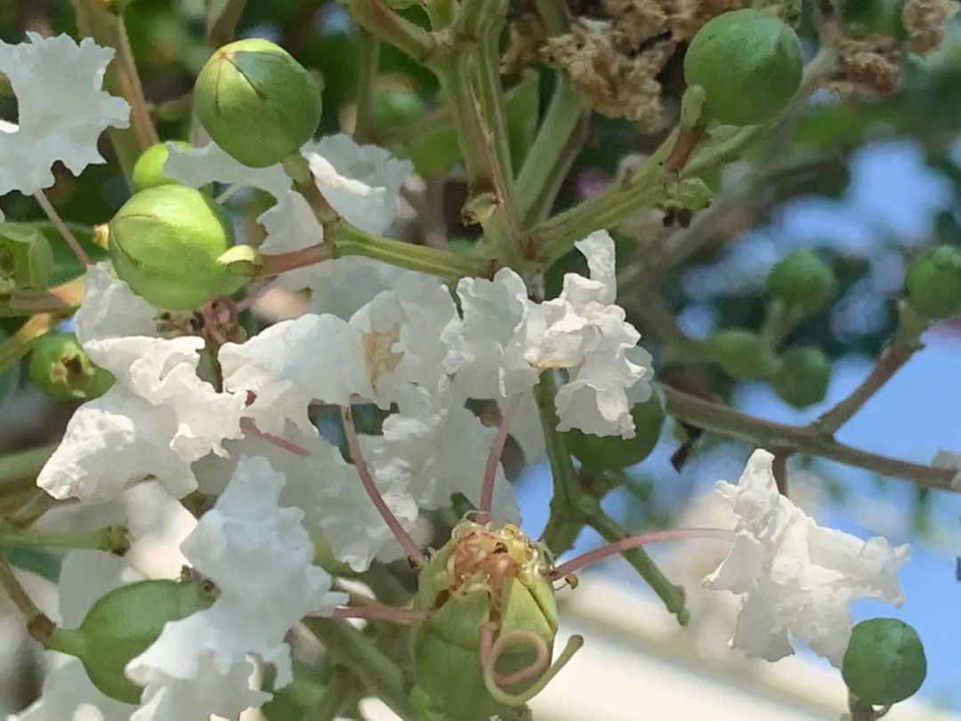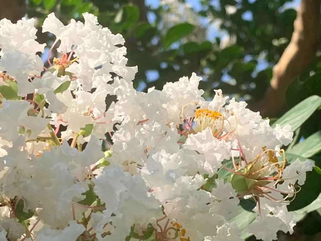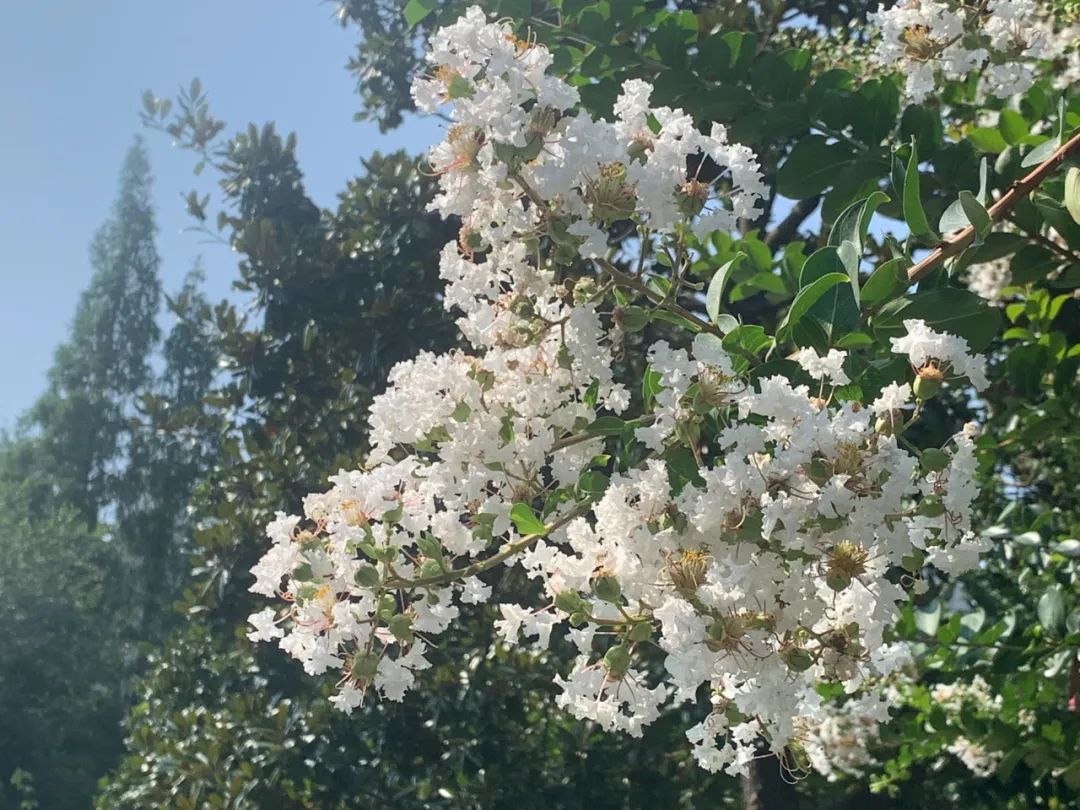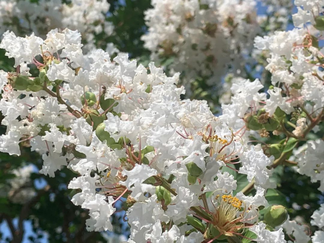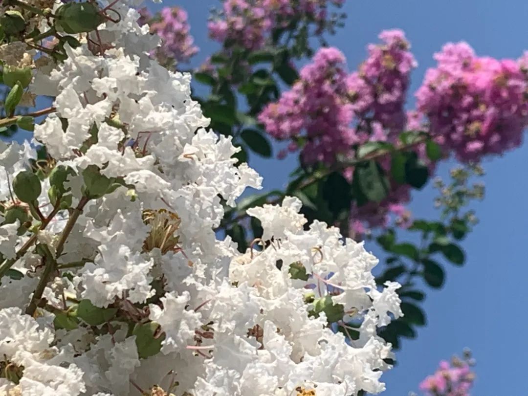 “谁道花无红百日,紫薇长放半年花”。到了盛夏时节,正是紫薇花开最美的时候。树姿优美,树干洁净,花色艳丽,花期又长,紫薇就像夏日物语、心中白雪,带给大家一丝浪漫和清凉。