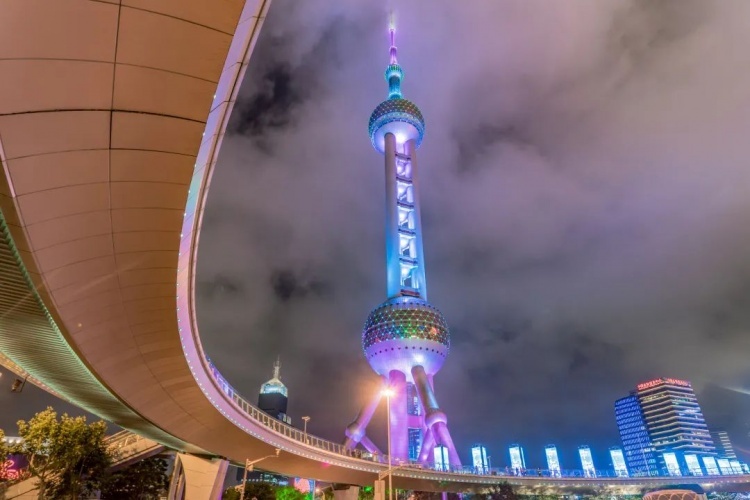 华灯初上,陆家嘴的繁华与绚丽尽显,十分适合拍摄大都市的夜景。