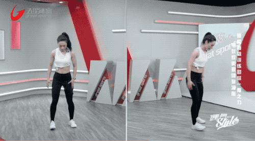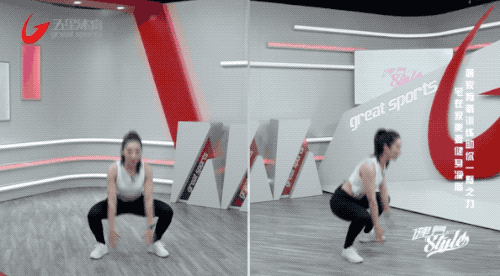 3.每次蹲跳落地,步伐轻盈,膝关节不超过脚尖,后脚轻轻点地,左右手相互协调,保持节奏感。在这个运动中保持匀速呼吸,如果跟不上节奏可以适当放慢速度,但一定要坚持完成哦。