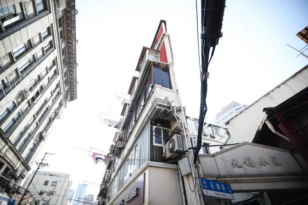 宁波路上的“纸片楼”,最窄的墙面只有20厘米。住在四楼的唐阿姨一家是楼内居住条件最差的一户。她家没有门,人从一个“洞”钻进去;顶是斜的,有一半房间矮得让人抬不起头。上厕所用痰盂,用水要去楼下的公共水管接。唐阿姨最大的愿望是,40多岁的儿子能在旧改后找到对象。2021年10月,“纸片楼”所在的福建路地块旧改生效了。