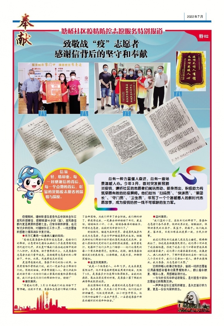坚守“疫”线 守护家园 感恩有你——塘桥社区疫情防控志愿服务特别报道