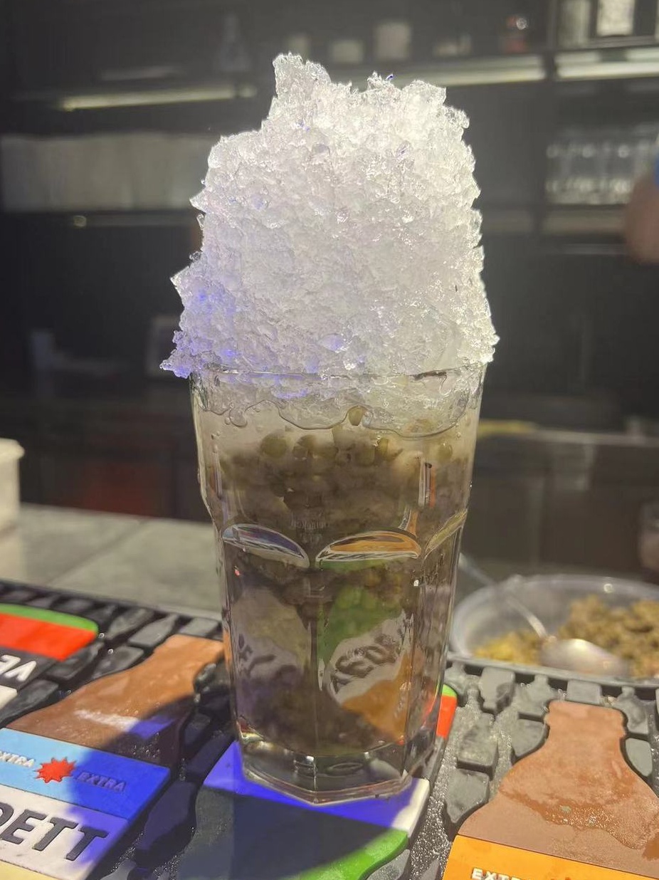 拿到手后一定要先拿勺子或吸管用力戳戳,让糖水和冰块的融合,入口的瞬间,整个身子都似乎被电了一下,浑身一激灵,冰冰爽爽透心凉!