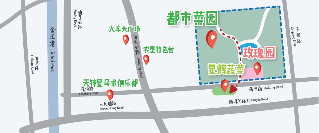 园区占地面积800亩,主要分为400亩主题都市菜园参观体验区、展馆以及300亩休闲娱乐区和100亩大美玫瑰园。