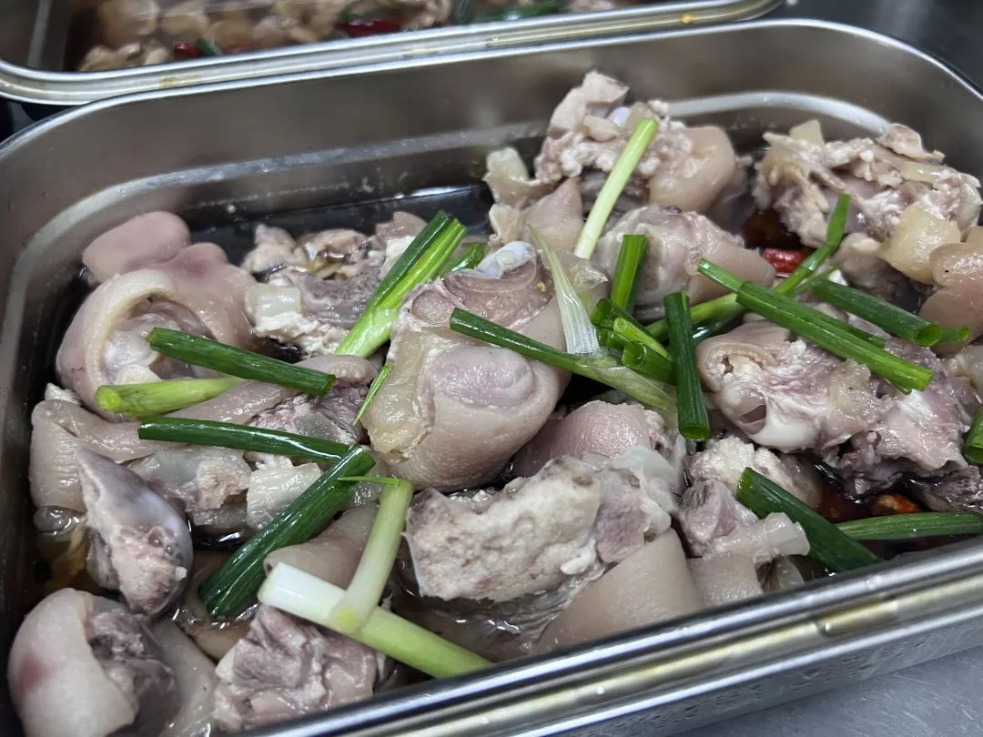 猪蹄的做法和鸡爪类似,不同的是,猪蹄在焯水后需要多煮1小时,直至全部熟透捞出过凉,浸泡在卤汁中放入冰箱内。糟卤3小时以上的猪蹄,看上去白嫩寡淡,但咬上一口却满嘴回味,原本肥润的猪蹄经过糟卤汁洗礼后,油腻感一扫而空,变得清新淡雅起来。