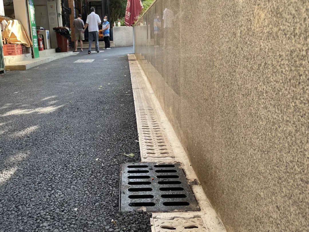 ☑ 为门坡及沿街门面房、商铺增设了75米明沟,进一步减少雨水流入小区的情况,减轻了小区出门管的排水压力。