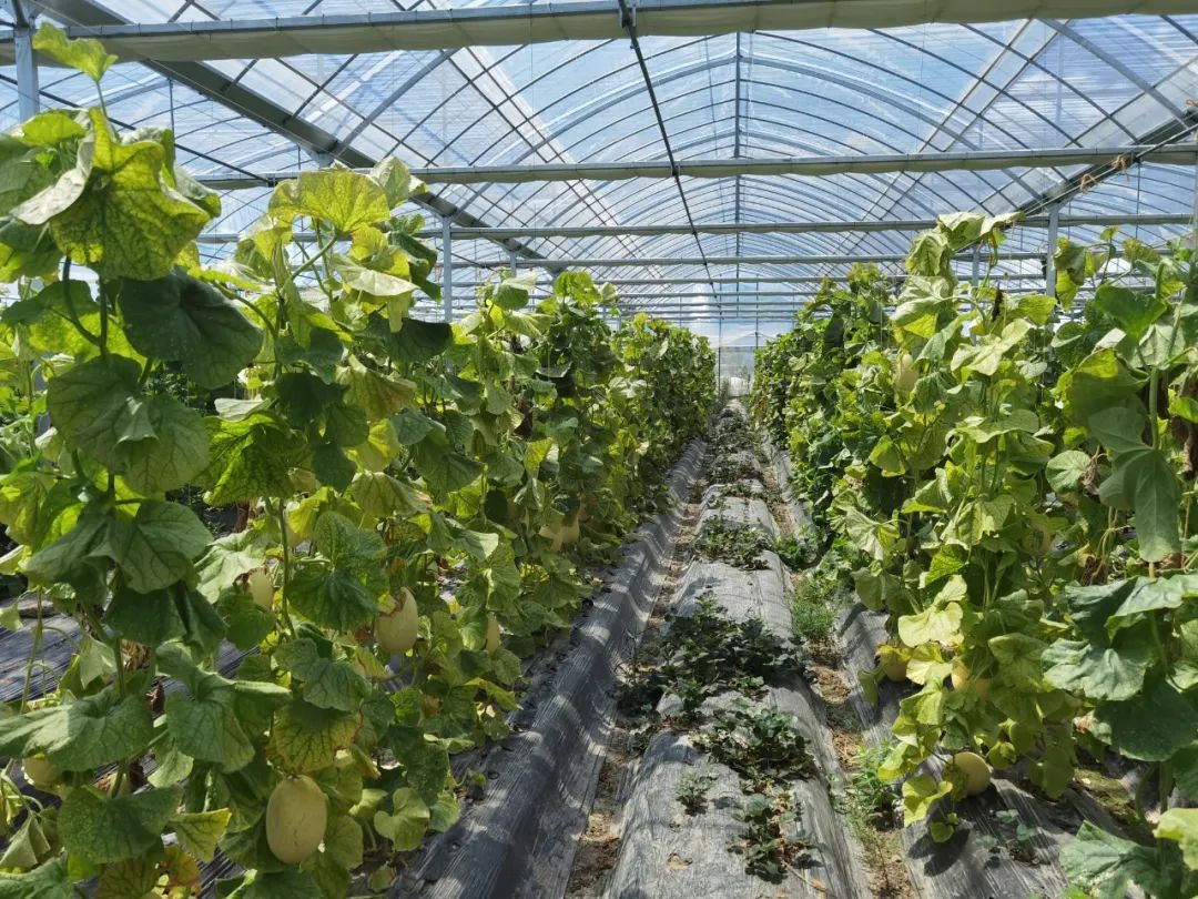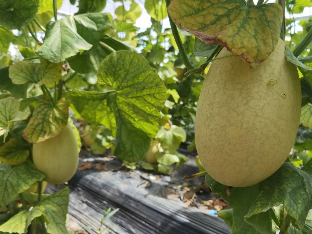 为了保证哈密瓜的品质,大棚内建设了现代化标准大棚,通过联动棚营造一个避雨环境,通过垂钓种植的方式,保证哈密瓜光照均匀,同时以色列滴灌技术,保证哈密瓜种植的水分和养分,做到对湿度、温度等进行调控,大大减少了工作人员的劳动量。