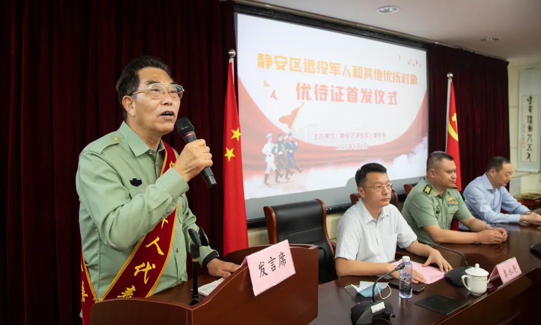 今天(8月1日)上午,区退役军人事务局在区军休二所举行了“静安区退役军人和其他优抚对象优待证首发仪式”,标志着静安区优待证申领制发工作的正式启动。