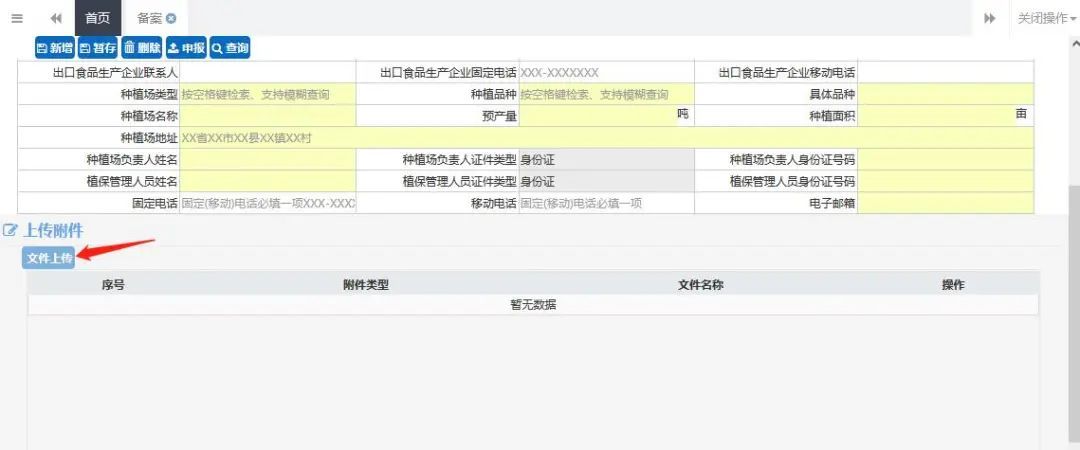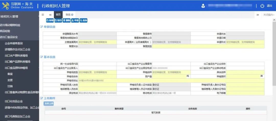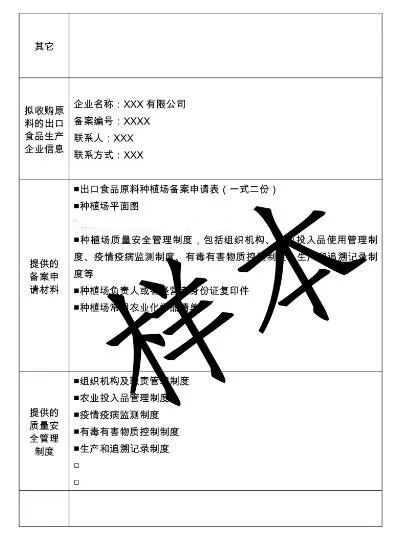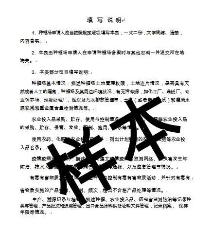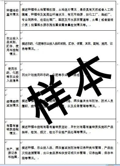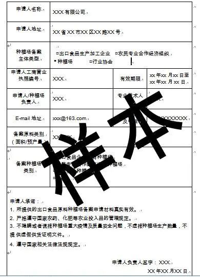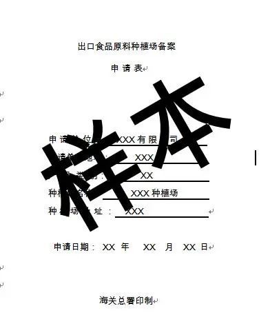 (一)出口食品原料种植场备案申请表(海关总署官网可下载)。←下文有填写样本