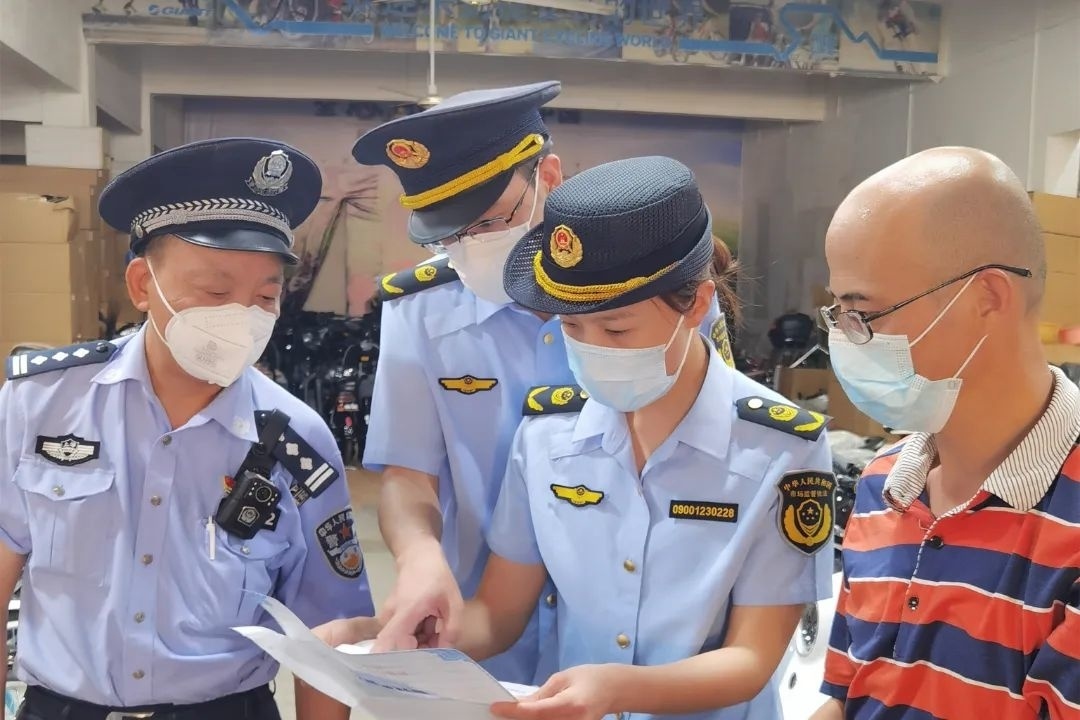 “擅自为电动自行车加装金属护栏是违法行为,请你立即予以拆除。”为进一步加强辖区内电动自行车安全监管,守护人民群众生命财产安全。近日,金山区朱泾市场监管所联合朱泾派出所全力开展电动自行车双随机专项整治行动。