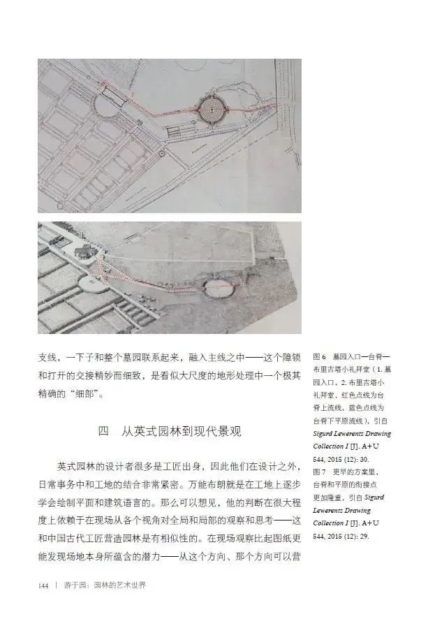 《再现之再现之再现——英国园林和西古德·莱维伦茨的几个景观设计片段》的作者通过一种“局部”和“整体”关系的叙事性空间技巧,将瑞典建筑师莱维伦茨的作品与英式园林联系在一起,阐释了二者中的共性,并阐释了通过空间层次这一操作手段将现实与想象进行转换与呈现的做法。同时,此文也详细介绍了关于莱维伦茨的案例,讨论英式园林中利用地形塑造空间感知所形成的空间体验与莱维伦茨的相似之处。