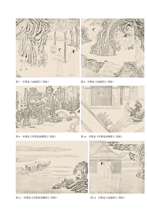 通过对汪廷讷的生平、环翠堂的选址及文献等方面的考证,《环翠堂园景图》以图像研究的形式为读者提供了观赏园林的角度,也展现了版画为表现园林空间发挥的作用。而刘珊珊的《中西交流视野下的明代私家园林实景绘画探析》,则将研究的视角转向园林绘画,从中西绘画理念的差异与碰撞的角度,突出明代园林绘画受西方绘画的影响,交代了明代园林绘画影响了全景式构图绘画方式的出现与发展。其中包含了西方绘画与中国传统绘画方式的双重影响,这一类型的绘画既非写实,也非完全想象,而是受到一定的现实因素影响,从而对园林研究的考证提供了一种具有参考价值的图像论据。因此,这一文章可以作为从绘画的另一角度认识现已消失的古代园林面貌的途径。