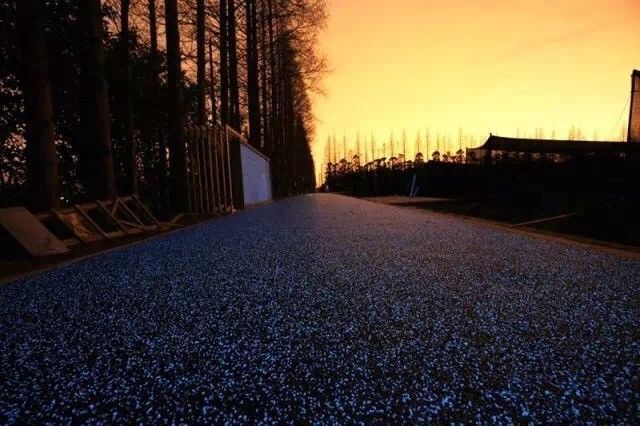 看这条白天能够吸收阳光、晚上荧光闪闪的道路。
