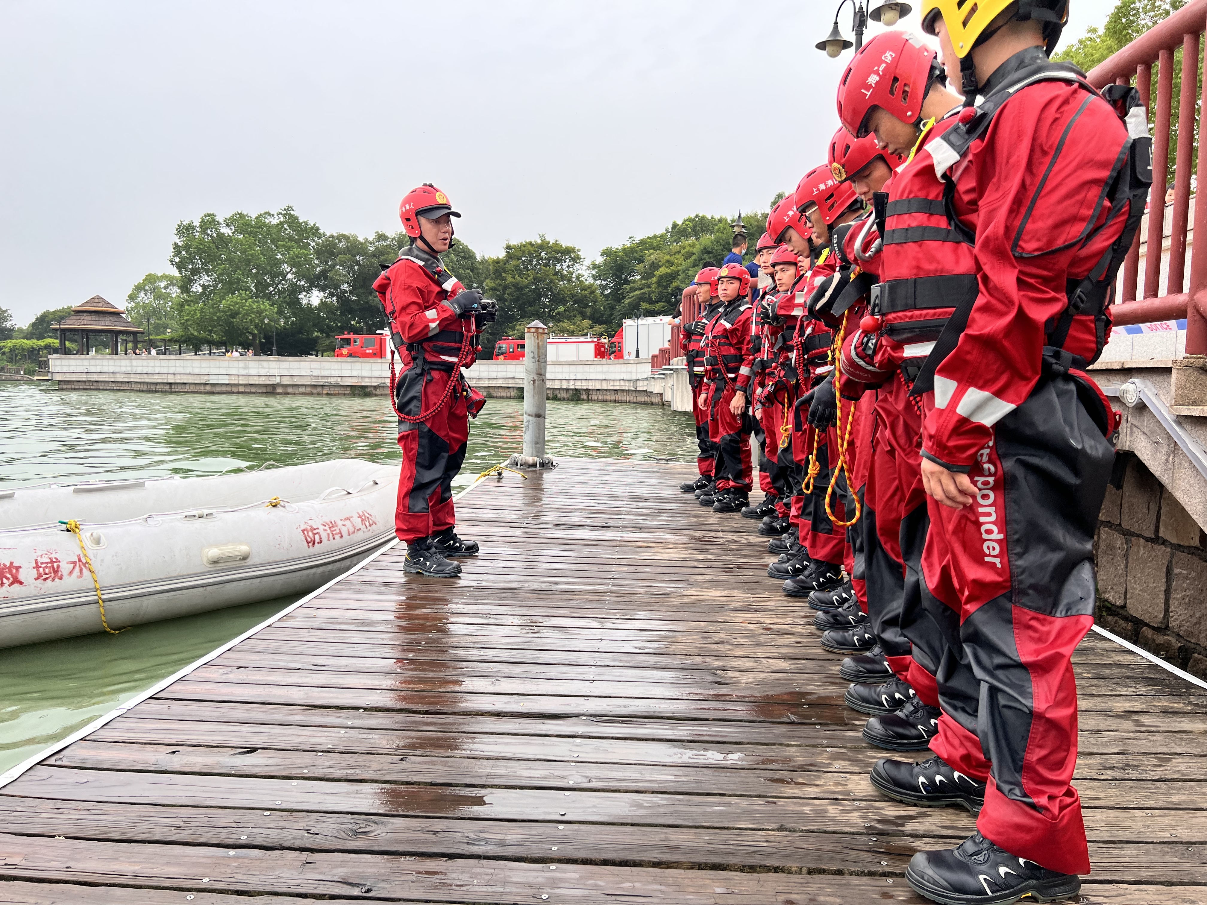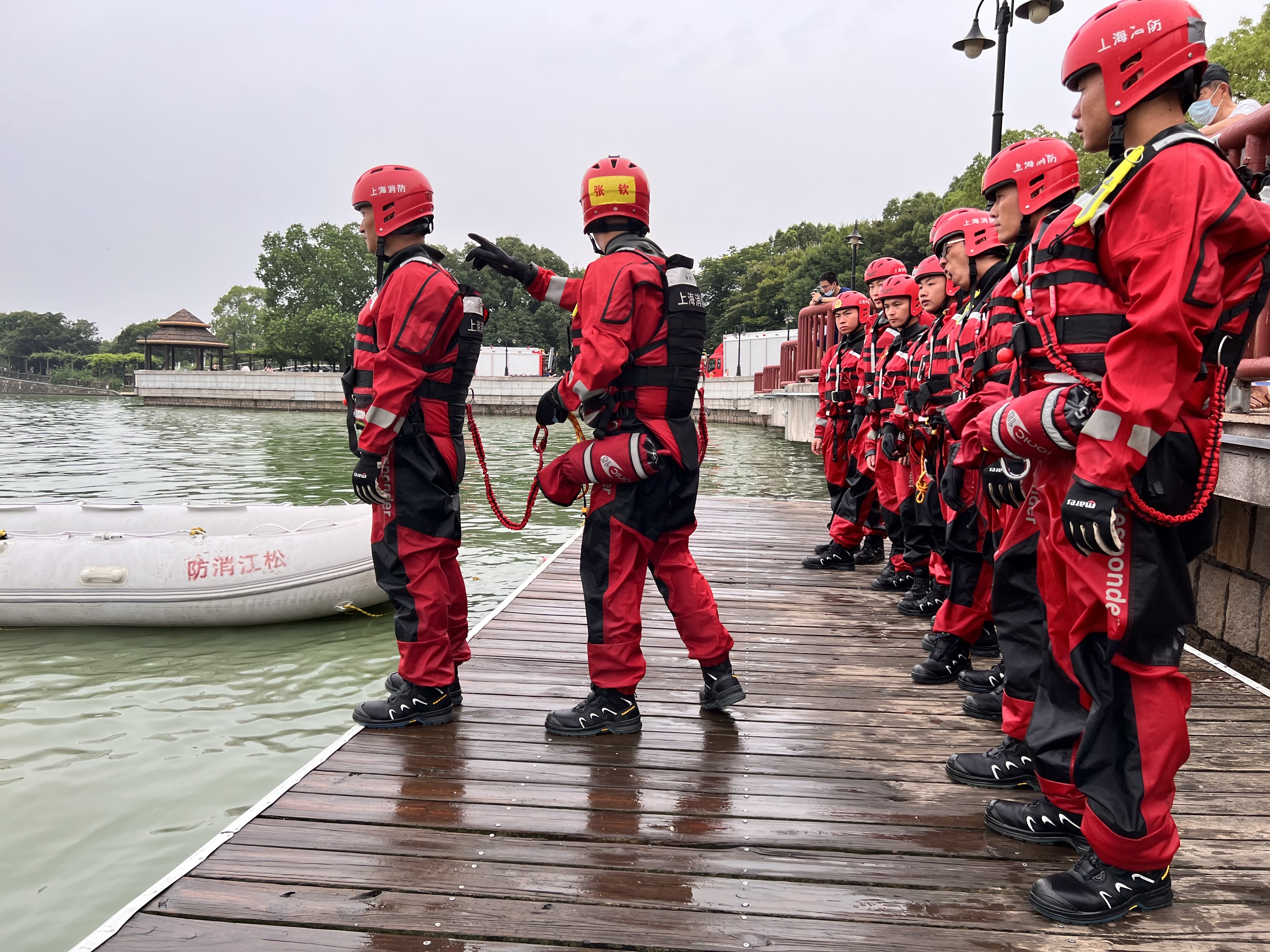 夏季天气炎热,不少市民喜爱到水边玩水消暑,但随之而来的不慎落水情况时有发生。为进一步提升消防员水域救援技能水平,松江区消防救援支队日前在华亭湖畔开展了一次专项技能演练。