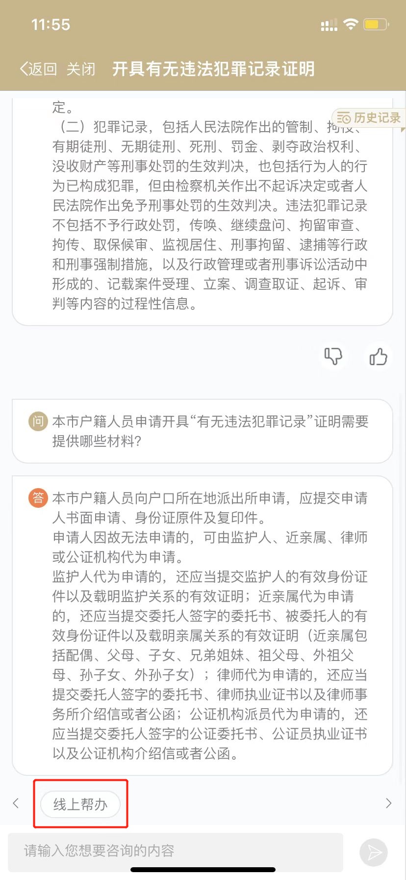 今天开始,第二批线上人工帮办的66个高频事项正式上线,共涉及11个部门和各区,其中个人事项33项、企业事项24项、个人和企业事项9项。与首批事项合计101项,实现线上人工帮办覆盖本市办件量居前的100个高频事项的目标。101个事项占“一网通办”依申请类事项年办件量的80%左右,通过提供线上帮办服务,将极大提升“一网通办”办事的便捷度。