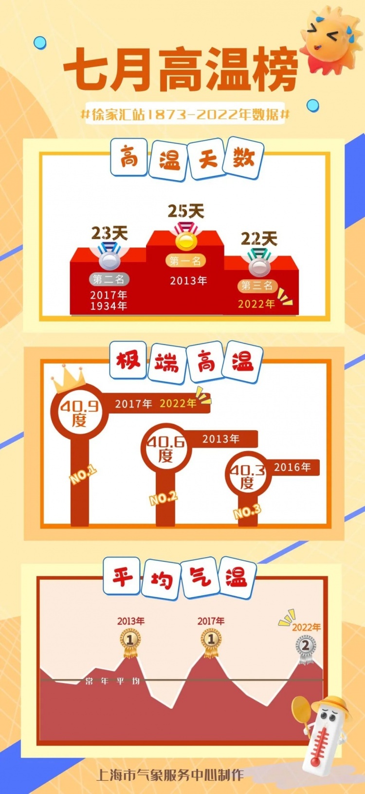 今年5月30日入夏至今上海已出现29个高温日,是常年同期平均的2倍。7月的31天中有22天高温,7月更有多项气温纪录,在七月高温榜中占据一席之地。