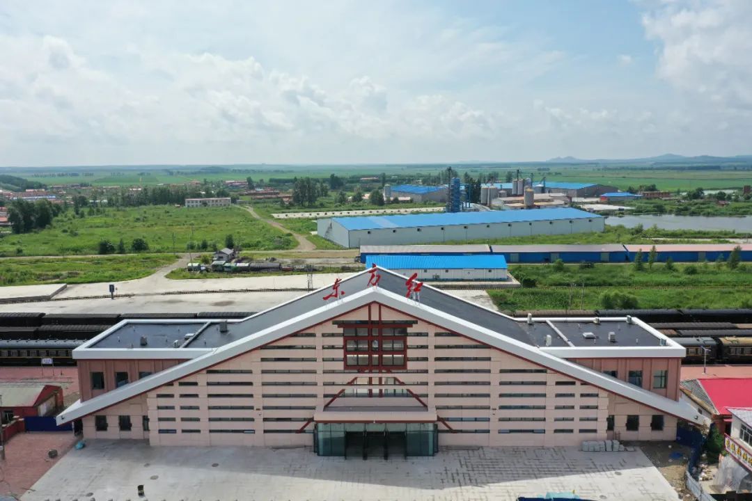 东方红站是我国东北铁路网的“极点站”,也是我国唯一以“东方红”命名的火车站,其地理位置与历史意义极为特殊——该站为时任农垦部部长王震将军,于1958年指挥各路转业官兵向“北大荒”进军时,在视察密东(密山至东方红)铁路建设时期亲自命名的“终点站”,站名取意“最早迎来太阳的地方,又象征着曙光和希望”。该站也成为见证“十万大军挺进完达山”和“铁道兵将铁路修进北大荒”等相关历史的标志性建筑。