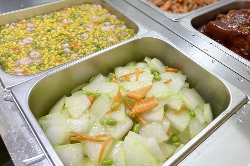 睦邻小厨提供的很多菜品都是老上海人钟爱的家常菜,红烧肉汤汁浓郁,冬瓜炒毛豆清淡鲜嫩。隆昌路睦邻小厨负责人王彬表示,每天厨师都会准备8个荤菜、10个素菜,而且菜品每天更换,尽可能满足居民不同的口味。
