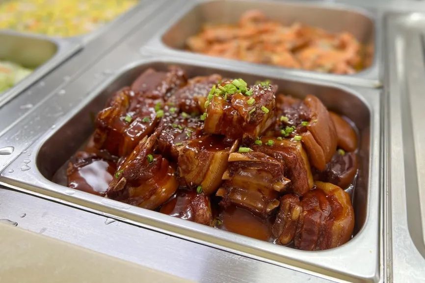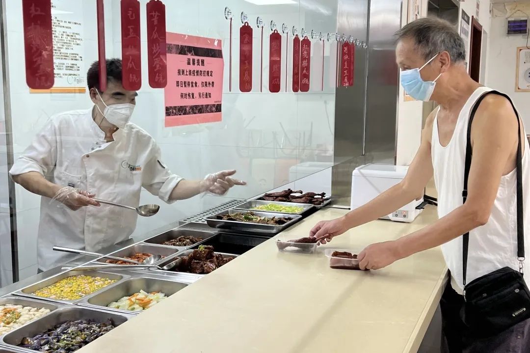 72岁的阎叔叔点了几块红烧肉,搭配上丝瓜和刀豆,再带两盒米饭,一顿午餐完美解决。“太太喜欢吃清淡的素菜,我喜欢吃口味浓厚的荤菜,一荤两素的选择,既不腻又营养。”阎叔叔是这里的常客,以前他每天都会过来,不仅是午餐,早餐和晚餐也被睦邻小厨“承包”。