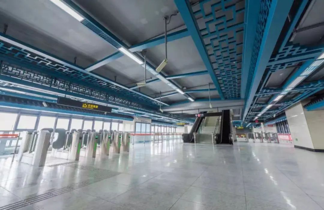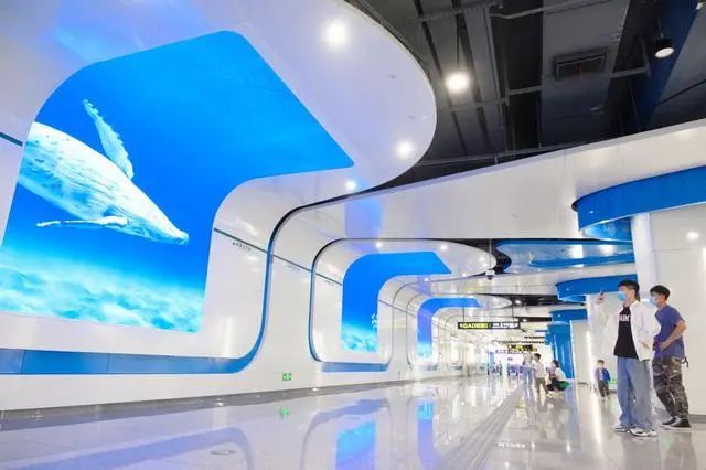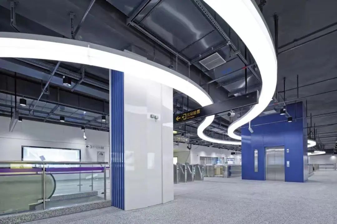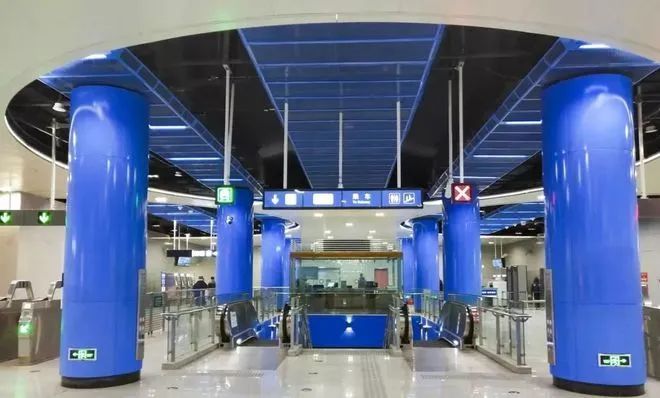 蓝色的海洋配上七里河站蓝色的装饰色调,满满的科技感。
