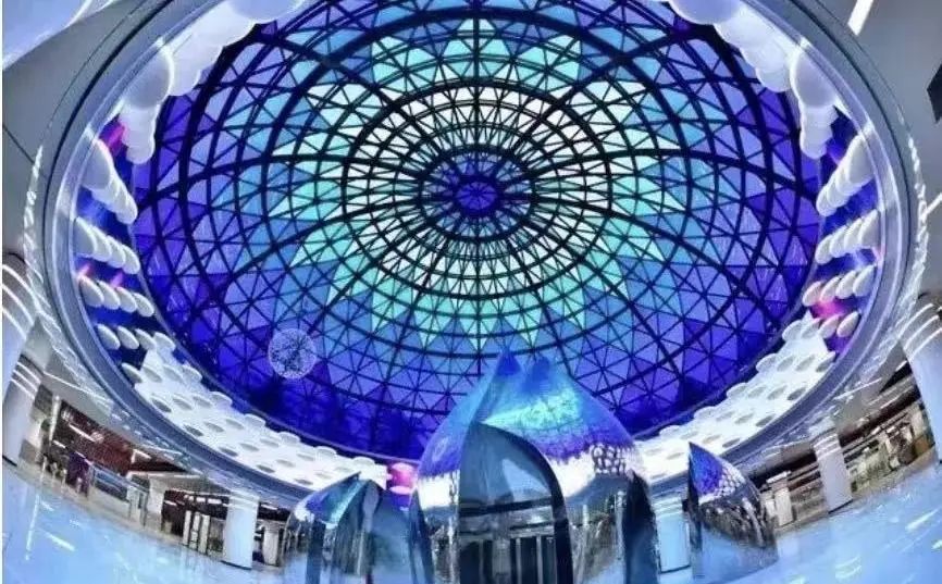 武汉商务区站内部有一巨大“穹顶”,以蓝紫色为基调,给人一种漫步星际的震撼之感,被誉为“武汉最美地铁站”。