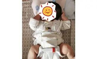 第一次她是独自一个人来的,帮她乳房做手诊的时候发现,虽然乳头扁平,但是延展性非常好,手挤奶的时候乳汁飚的老高。和她分析了一下,可能是宝宝的含接问题,等看到如上宝宝照片时,确实有点担心宝宝髋关节被固定住,抱着的时候有可能不能和妈妈紧密相贴。但是等第二次就诊时,她把宝宝抱过来,指导妈妈摇篮式哺乳时,发现宝宝含接非常好,但是妈妈乳房特别大,重力作用导致乳房容易下坠,所以老是吃着吃着乳头就掉下来了。