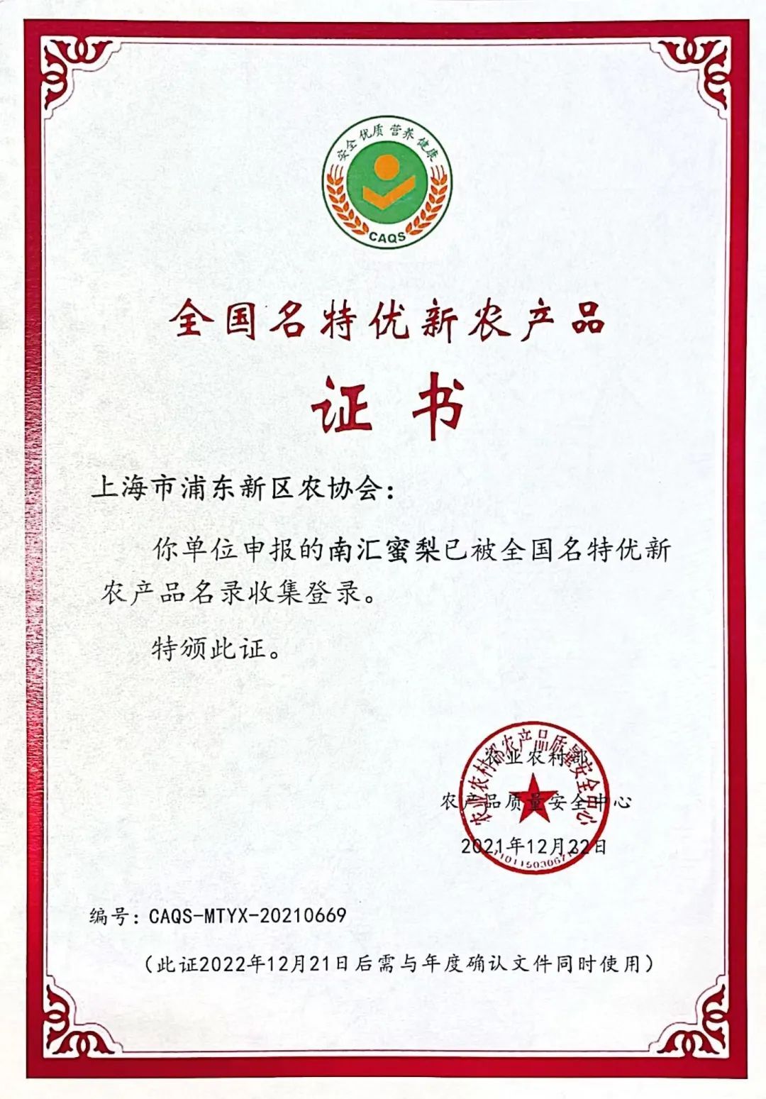 在2006年上海市第一届梨评优推优活动中,浦东翠冠梨荣获金奖。2013年5月,浦东新区农协会牵头组建南汇蜜梨品牌合作联社,“南汇蜜梨”正式成为浦东品牌瓜果。2021年,“南汇蜜梨”登上全国名特优新农产品名录。