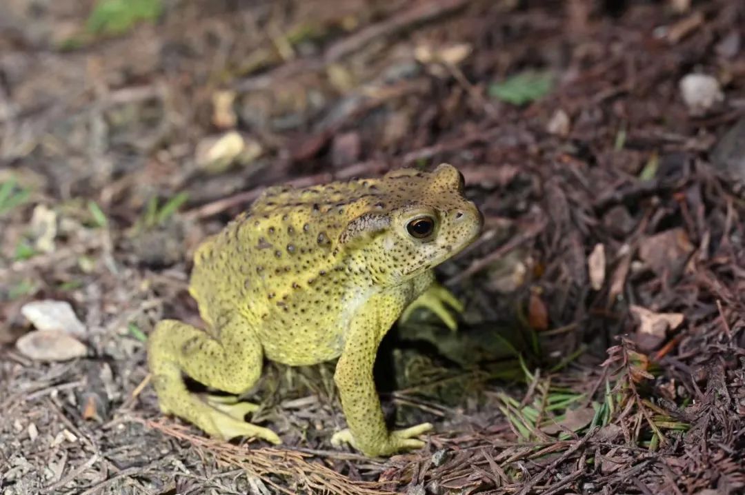 中华大蟾蜍。俗称癞蛤蟆,为上海市较为常见的两栖动物,头宽大于头长,吻圆而高,两侧耳后具有毒腺,多为褐色至黄色,后背布满大小不一的圆形瘰疣,主要取食蚊子、蝗虫、蝼蛄等各类昆虫,不可以私自捕捉。