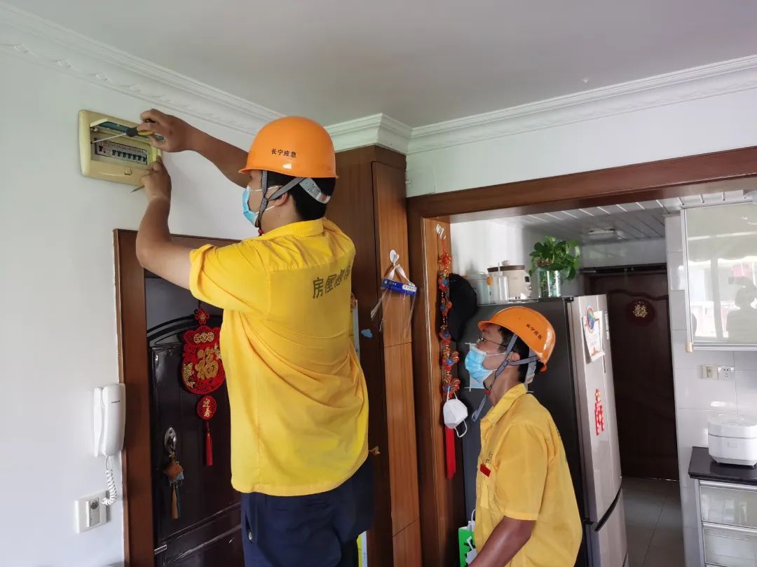 长宁区房屋维修应急中心维修人员正在排查断电问题