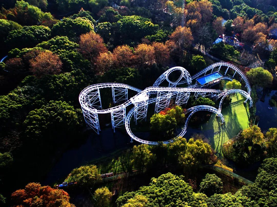 步入其中,会发现仍保留了一部分过山车骨架,这也是园方特意为老游客们留下的“情怀”。经过局部重新除锈、钝化、上漆,保留的骨架焕然一新;原有的过山车急速过弯的轨道,经过巧妙地构思,结合重竹木材料,改造成了一段U型栈桥,让游客可以多角度观景。