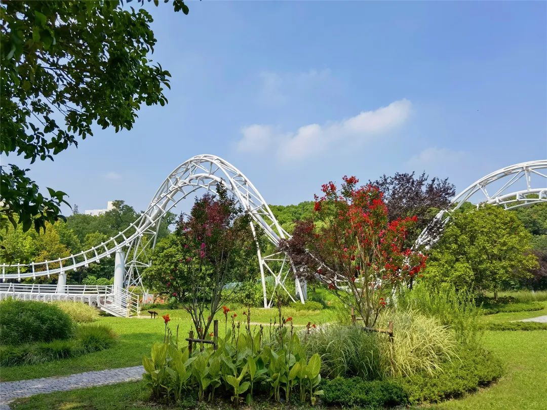 去年,由于公园过山车已到报废年限,园方对其进行了拆除,并对这部分区域地块进行重新设计梳理,打造了一片“可漫步、可赏花”的陆生水生植物结合的打卡地。